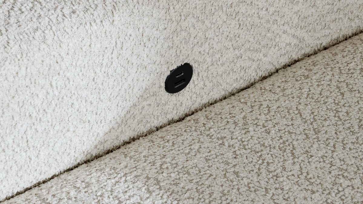 Der Anschluss ist wahlweise Schwarz oder silberfarben erwhältlich und in die jeweilige Armlehne integriert und fügt sich optisch unauffällig in das Gesamtbild ein. So genießt du moderne Technik, ohne Kompromisse beim Design einzugehen.