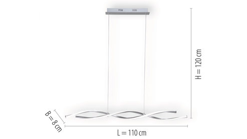 Dank des Acryls scheint das Licht zudem besonders hell und gleichzeitig angenehm. In der Länge misst die Pendellampe ca. 107 cm, in der Breite ca. 9 cm und von der Decke hängt sie mit ca. 120 cm. Im Lieferumfang enthalten sind die zwei LED-Boards mit jeweils 10,2 Watt, 925 Lumen und 3.000 Kelvin.