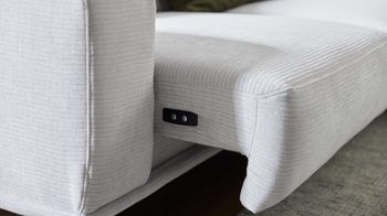 Die Bedienung erfolgt intuitiv über innenliegende Sensoren, die dezent im Sitzbereich integriert sind. So lässt sich die Vorziehfunktion mühelos und elegant nutzen – ganz ohne sichtbare Tasten oder Hebel.