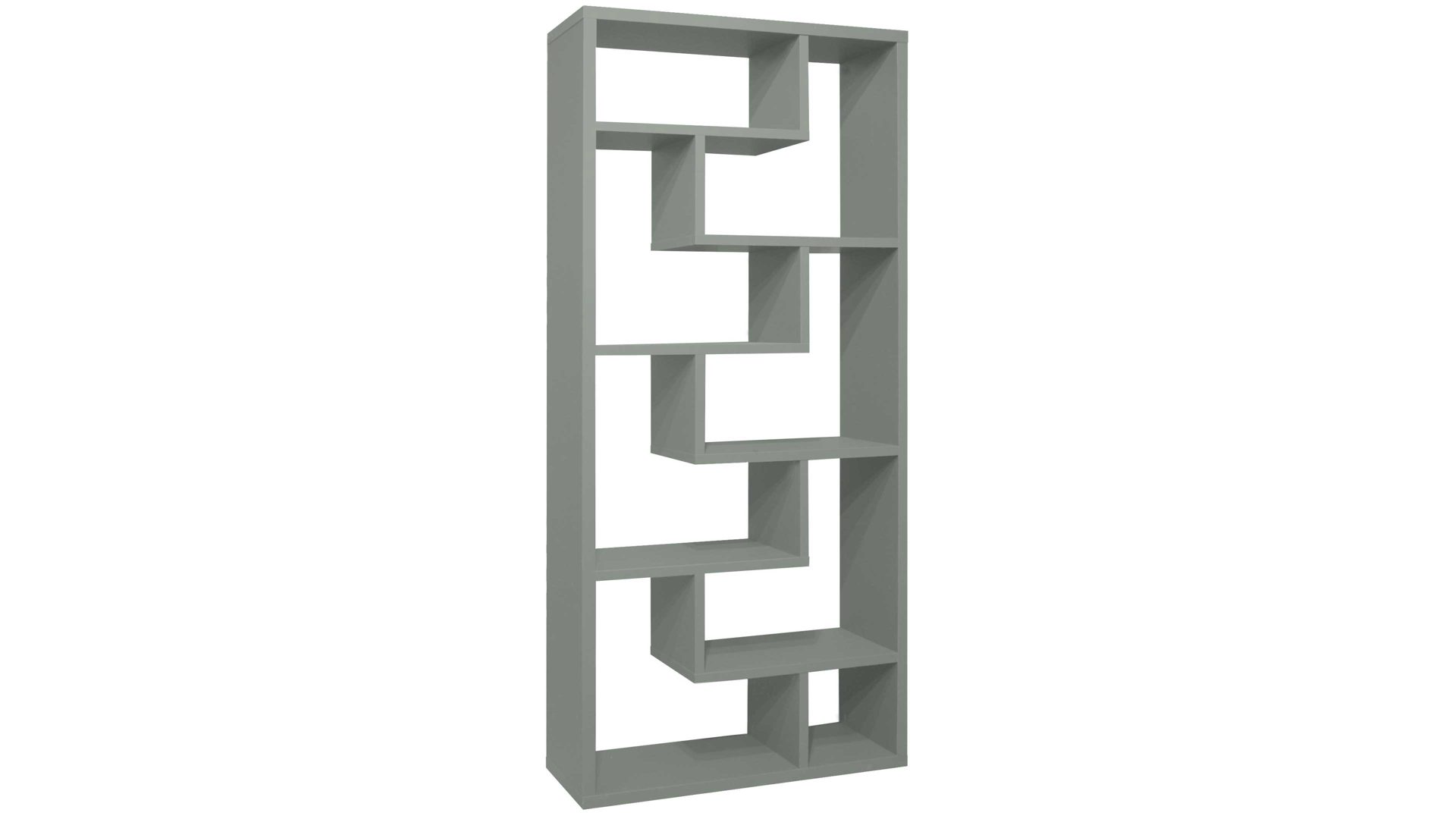 Die piniengrünen Mattlackoberflächen und die verspielte, aber dennoch harmonische Anordnung der Böden verleihen dem Raumteiler eine sehr moderne und elegante Ausstrahlung. Er bietet Ihnen insgesamt acht Fächer, in denen Sie etwa Bücher und Deko aufbewahren können. Doch auch Aktenordner sind hier gut aufgehoben. Die Maße des Regals belaufen sich auf ca. 90 x 199 x 33 cm (BxHxT).
