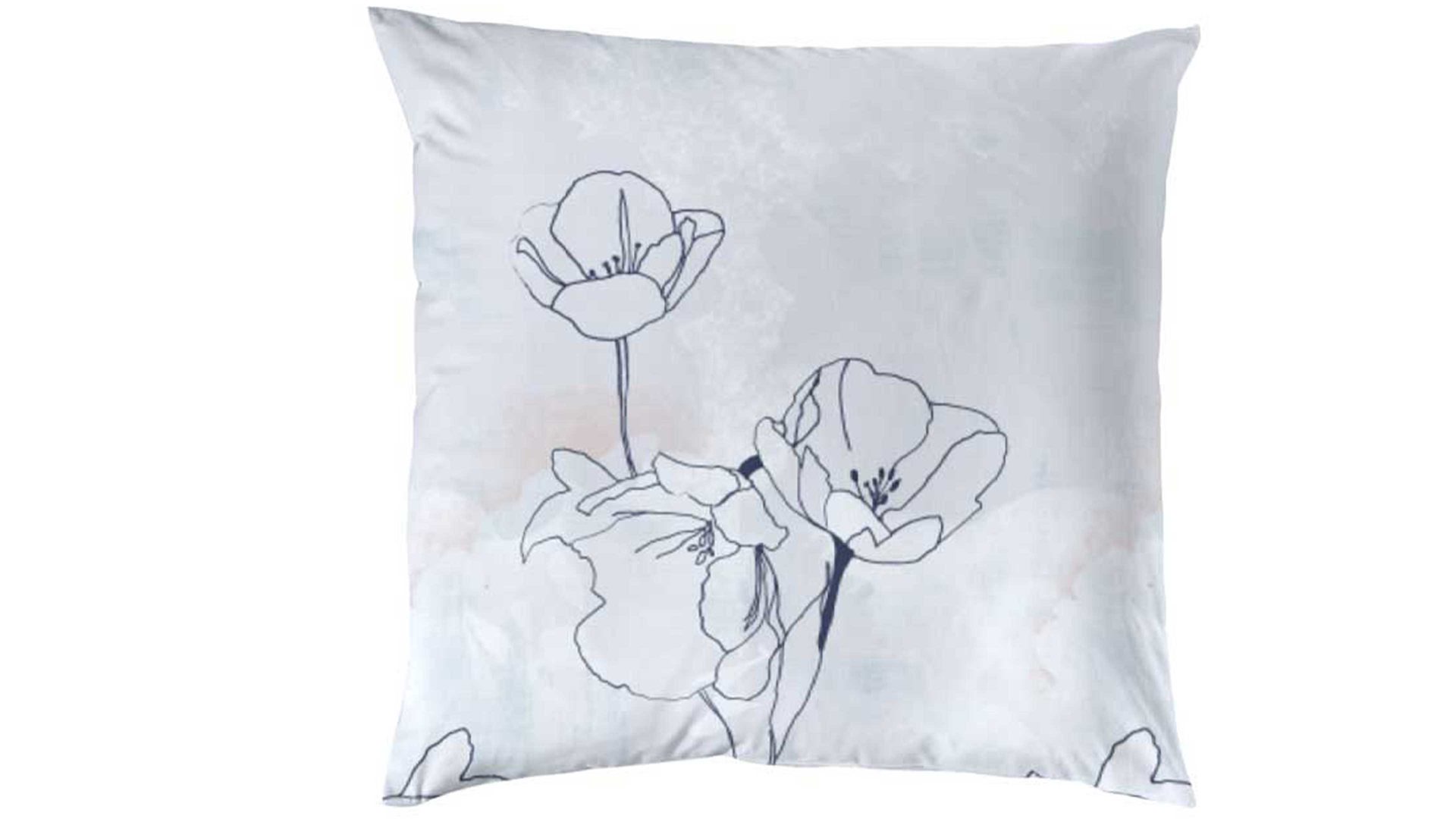 Bettwäsche-Set | zweiteilig | filigran-florales Muster in Grau- und Blautönen | Mako-Satin | 100 % Baumwolle | Reißverschlüsse | Ökotex-Standard 100 | Maße Bettbezug ca. 155 x 220 cm (BxL) | Maße Kopfkissenbezug ca. 80 x 80 cm (BxL) | waschbar bis 60 Grad | trocknergeeignet | weicher, angenehmer Griff | auch in Normalgröße bestellbar