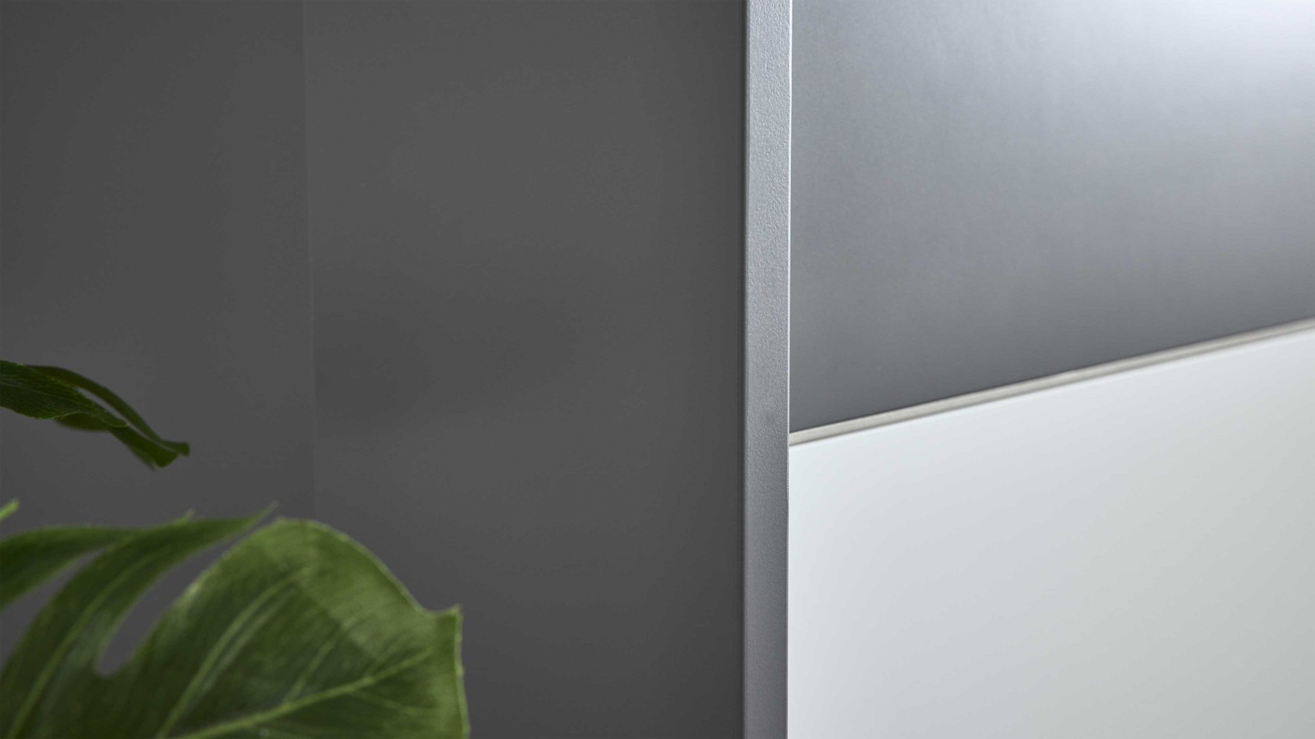 Das Passepartout aus der Interliving Kleiderschrank Serie 1207 ist die perfekte Ergänzung für die ca. 300 cm breiten Schwebetürenschränke der Serie. Mit seinen manhattangrauen Mattlackoberflächen fügt sich der Passepartoutrahmen harmonisch in das moderne, elegante Designkonzept ein und verleiht dem Schrank eine optisch klare, eingerahmte Kontur.