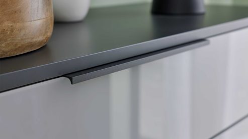 | Farbhinweis: | seidengraues Glas anthrazitfarbene Griffe basaltfarbener Korpus weiß Innenseiten schwarze Kunststofffüße | |