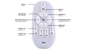 | Verstellbarkeit und Funktion: | dimmbar Memoryfunktion Farbwechsler Funk-Fernbedienung | |