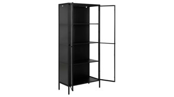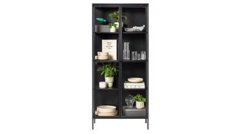 Dank der einfachen Montage lässt sich die Vitrine schnell zusammenbauen. Sie ist Teil einer Metallmöbel-Serie, die noch einige weitere Elemente in diesem stilvollen Industrie-Look umfasst. Dies gibt Ihnen die Gelegenheit, Ihre Räumlichkeiten harmonisch markant einzurichten. Jedoch sind die Möbel auch bestens als kreative Einzelstücke geeignet, die gezielt Akzente setzen.