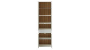 Für zusätzlichen Stauraum sorgt der große Stauraumschrank mit vier Türen, einer Schublade und vier Holzböden. Mit Maßen von ca. 60 x 215 x 40 cm (BxHxT) bietet er jede Menge Platz für Ordner, Akten und persönliche Dinge, die du im Arbeitsalltag schnell zur Hand haben möchtest. Ergänzend dazu bringt das offene Regal mit fünf Holzböden und einer holzfarbenen Rückwand Leichtigkeit und Offenheit ins Raumkonzept. Es misst ca. 30 x 215 x 40 cm (BxHxT) und eignet sich ideal für Bücher, Deko oder Arbeitsmaterialien, die du gerne sichtbar präsentierst.