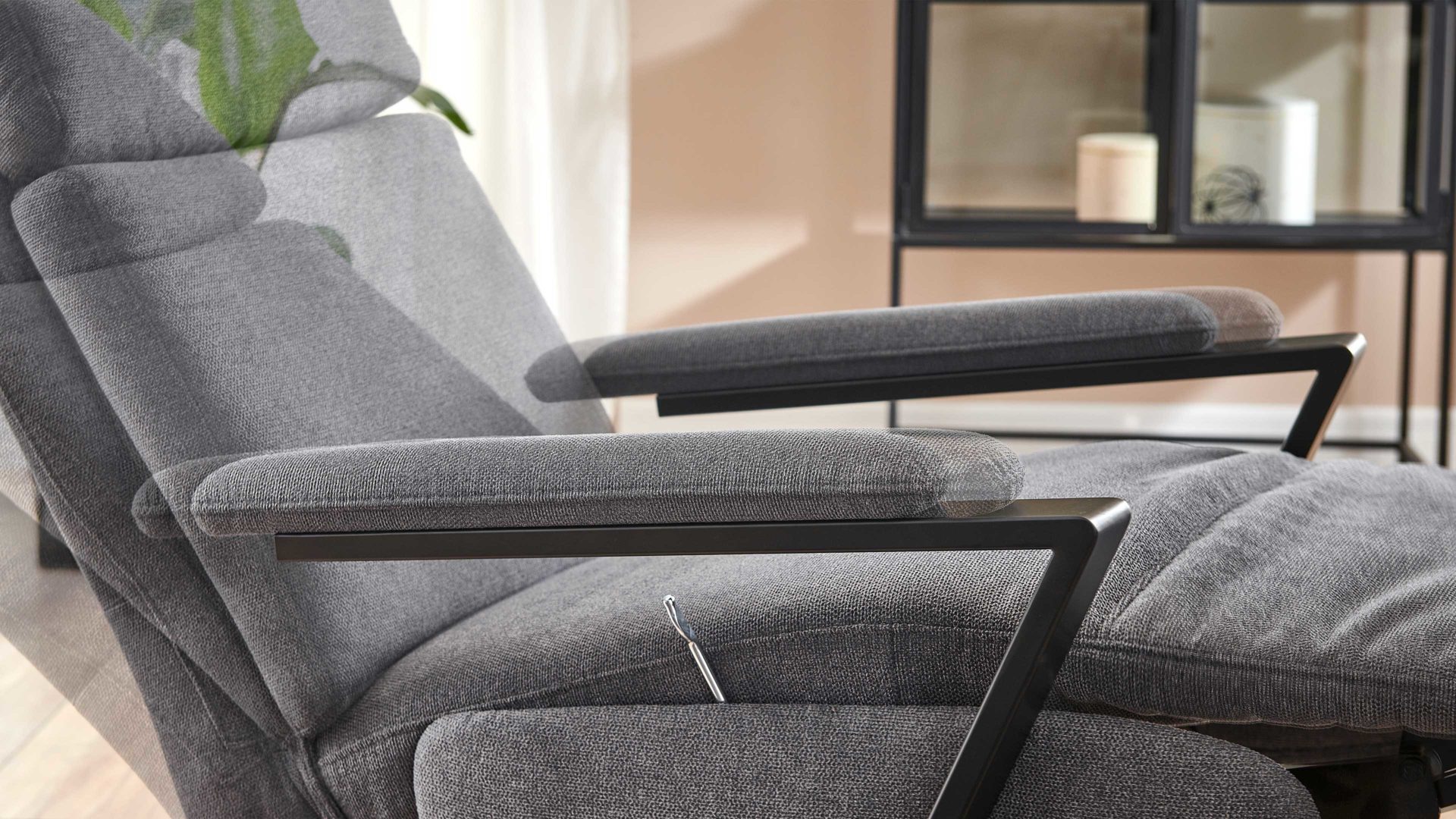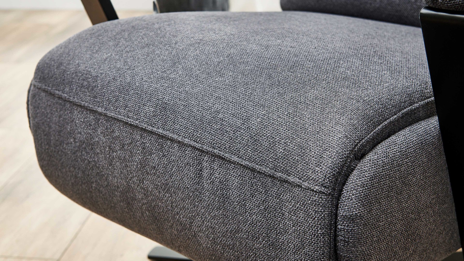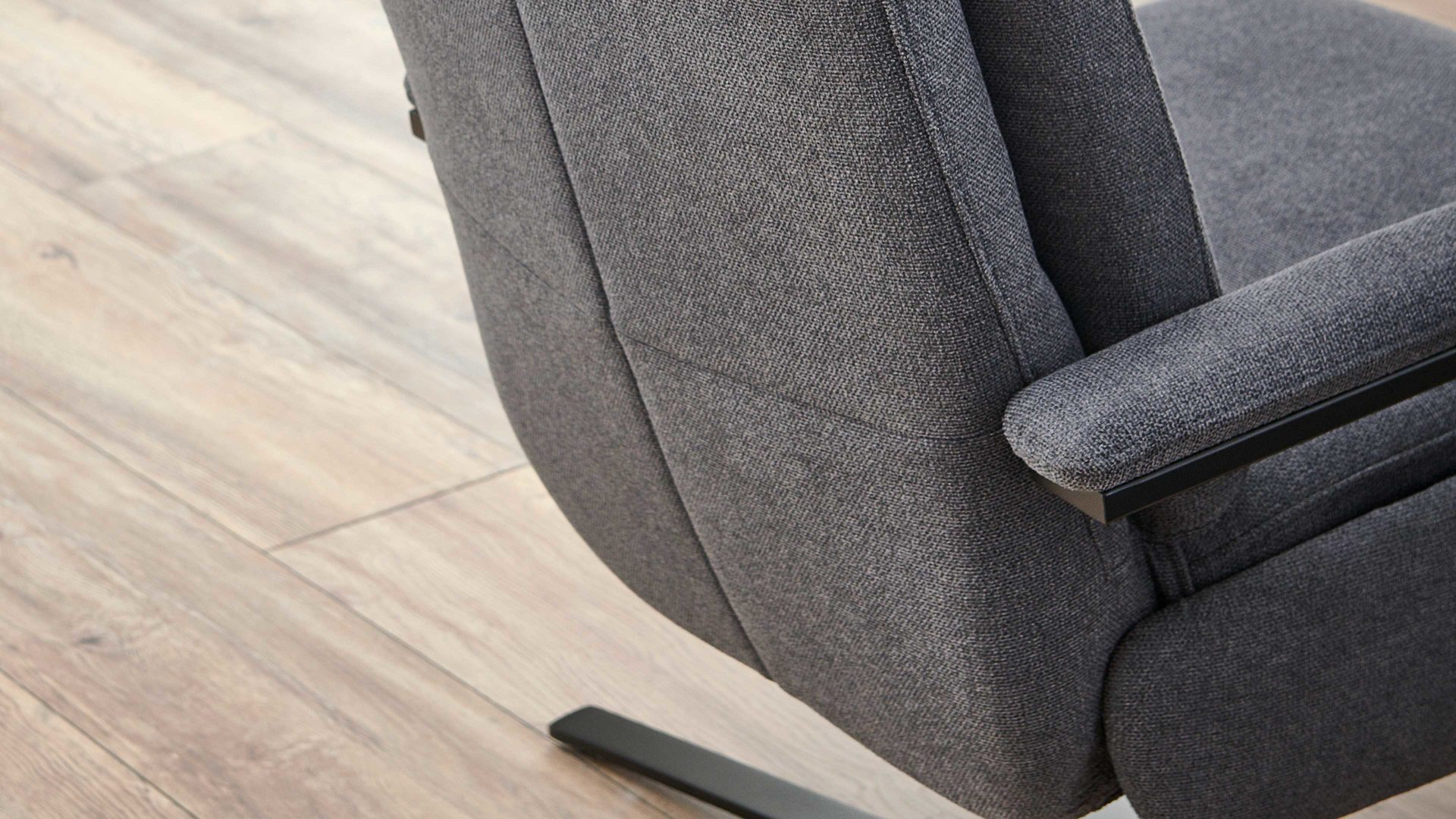 Der Relaxsessel aus dem hochwertigen Polsterprogramm OrthoSedis 4.0 kombiniert einen edlen anthrazitfarbenen Stoffbezug mit einem mattschwarz lackierten Metall-Sternfuß. Sowohl die Materialien als auch die Farben harmonieren perfekt und verleihen dem TV-Sessel eine moderne und elegante Ausstrahlung. Durch das zeitlose Design fügt er sich in verschiedene Einrichtungsstile passend ein.