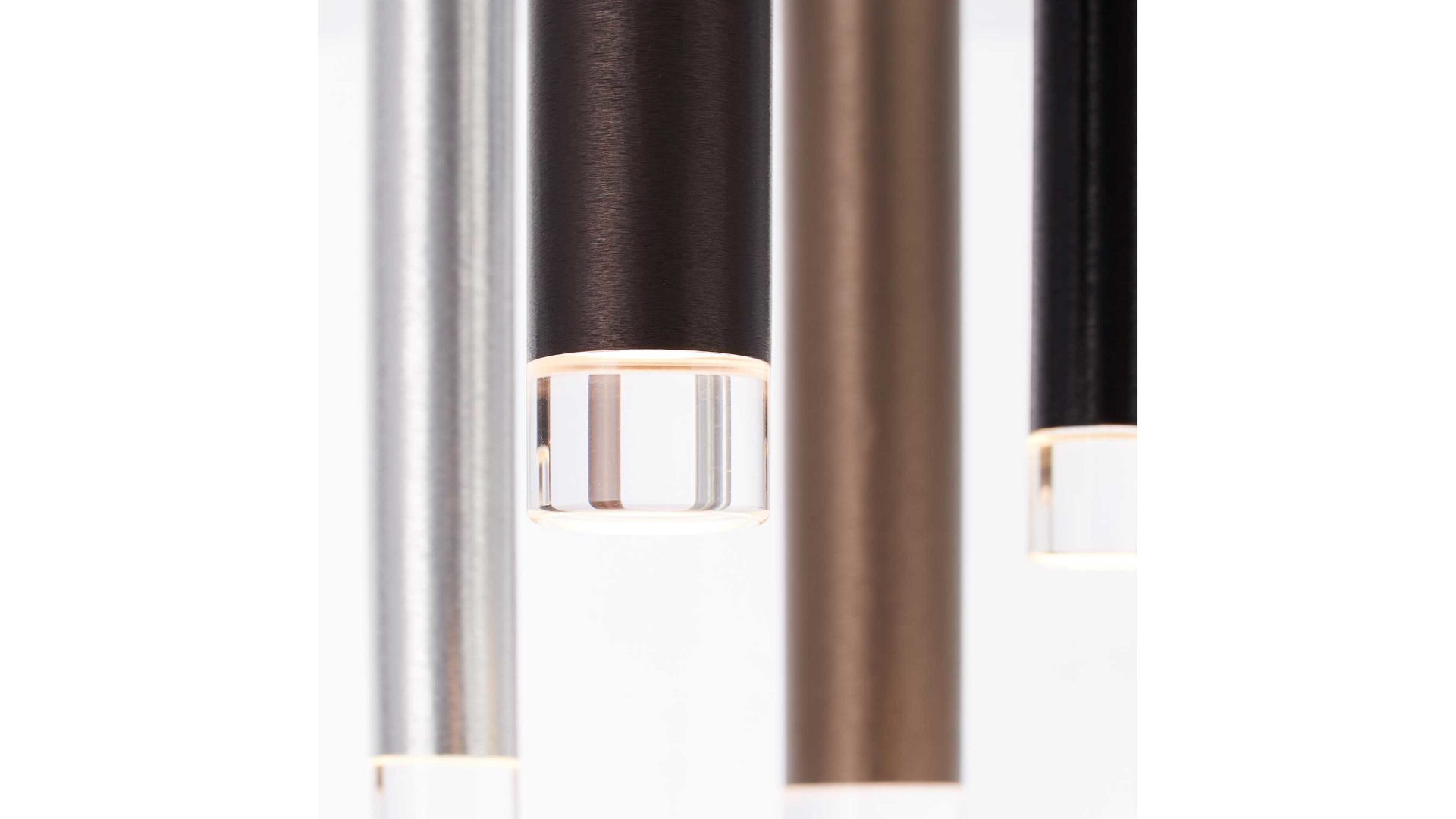 Die Deckenlampe besticht durch einen gekonnten Materialmix aus modernem Aluminium und Lampenabdeckungen aus Acryl. Abgerundet wird dieser trendige Look durch formschöne braune, schwarze und eisenfarbene Lampenschirme. Egal, ob Sie konzentriert arbeiten oder ein gemütliches Abendessen im Kreise Ihrer Familie genießen möchten, die Lampe ist dreistufig dimmbar, vielfältig einsetzbar und schafft tolle Atmosphären.