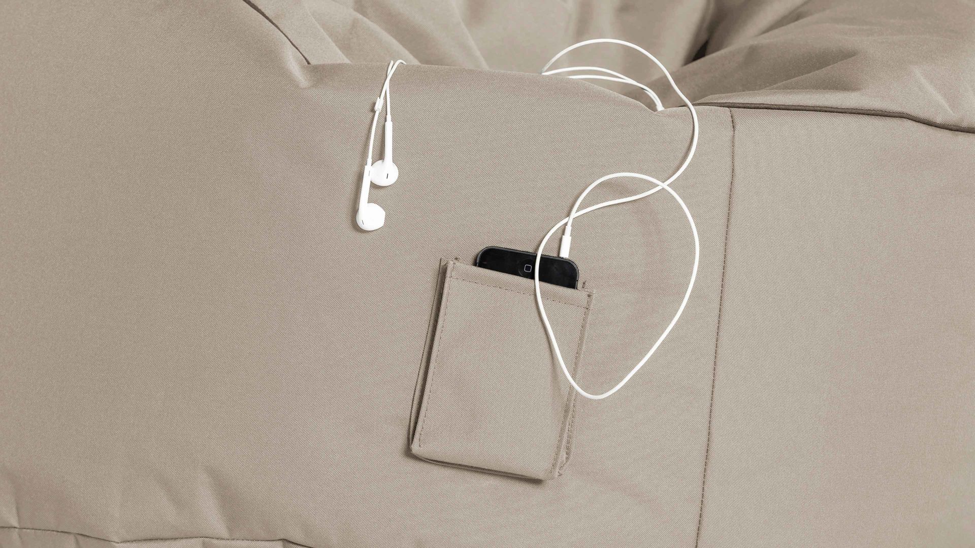 Der khakifarbene Sitzsack-Sessel Made in Germany ist genau das richtige Sitzmöbel zum Lesen, Entspannen oder zum Fernsehen.