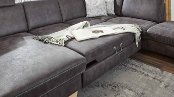 Gönnen Sie sich zu diesem Ecksofa Kopfstützen, Kissen und weitere Funktionen gegen Mehrpreis. Darüber hinaus ist die Eckkombination alternativ auch mit Metallfüßen lieferbar. Zusätzlich gibt es zu dieser Polsterecke auch eine attraktive Bezugsauswahl sowie eine große Planungsvilefalt.