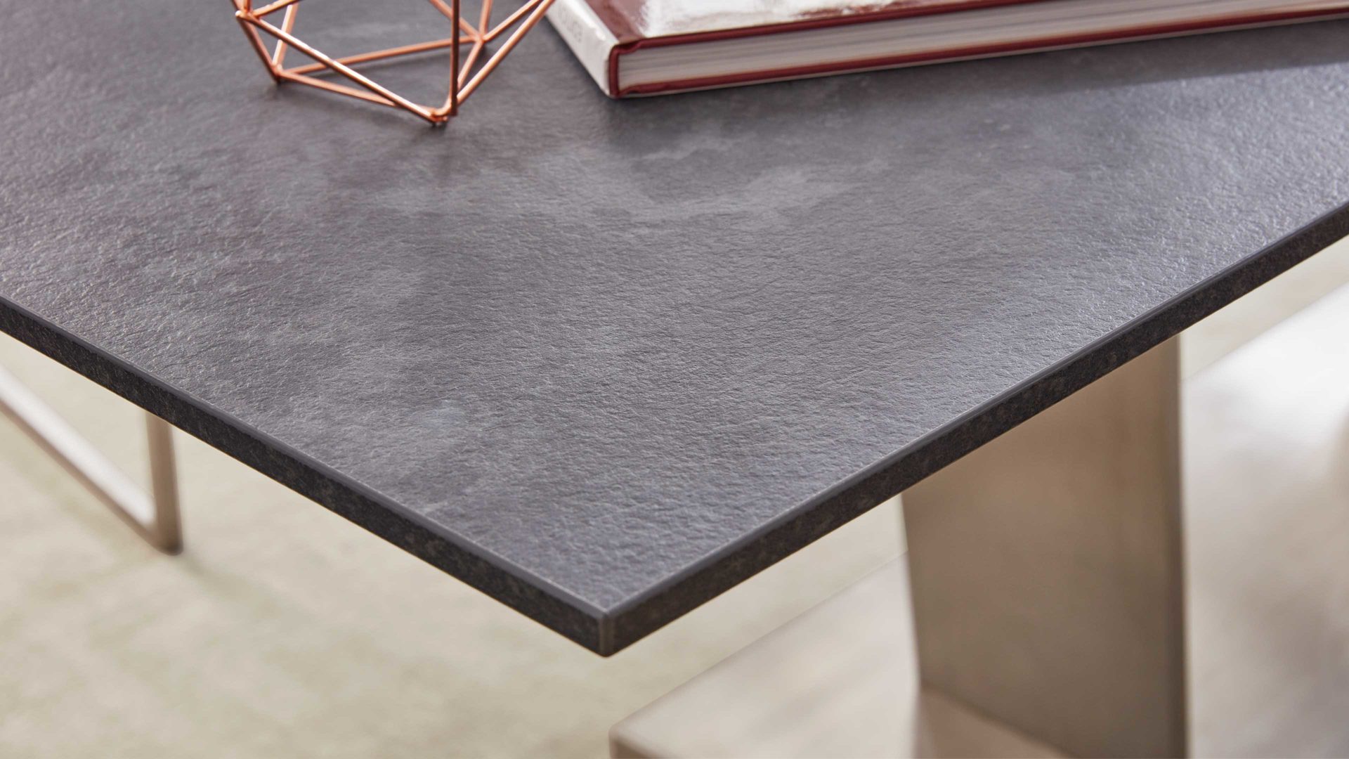 Ob Esstisch, Bartisch, Tresentisch oder Couchtisch – insgesamt neun Tischvarianten in sechs Größen stehen zur Wahl. Die hochwertigen Tischplatten aus HPL mit 3D-Struktur, Glas oder Glas-Keramik bieten dir volle Flexibilität in Stil und Funktion.