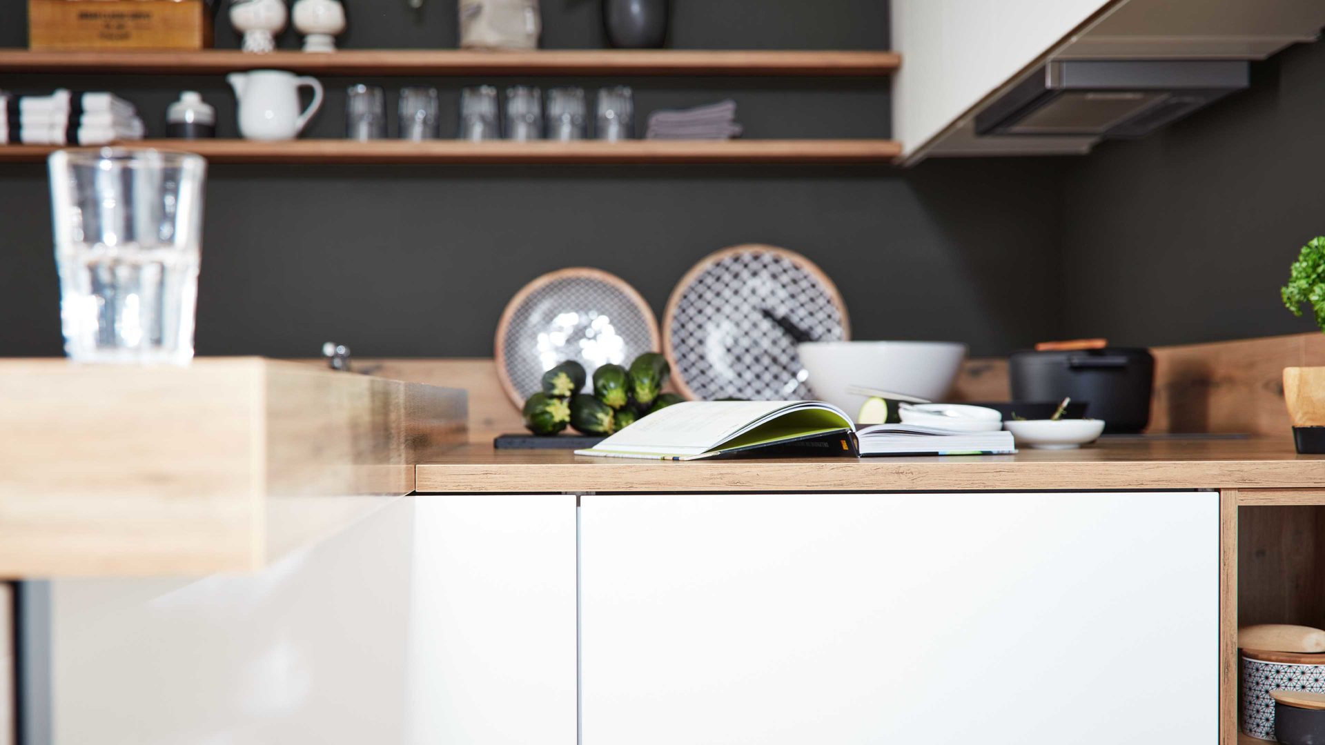 Interliving Küche Serie 3043 – moderner Mix aus Weiß und Vulkaneiche