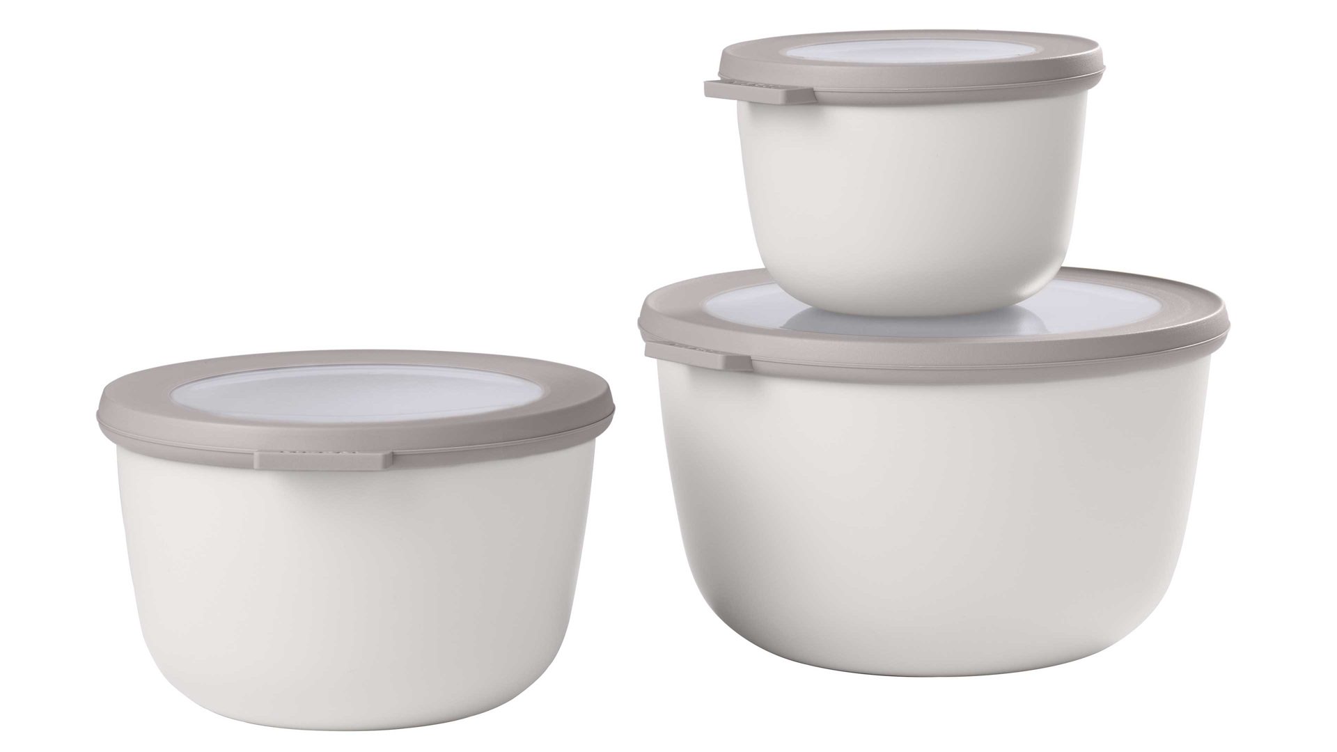 nordisch weißer, BPA-freier Kunststoff und Deckeln mit transparentem Sichtfeld und Rand in Schüsselfarbe