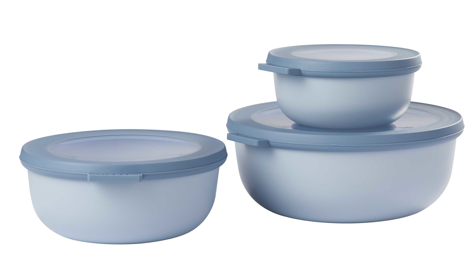 nordisch blauer, BPA-freier Kunststoff und Deckeln mit transparentem Sichtfeld und Rand in Schüsselfarbe