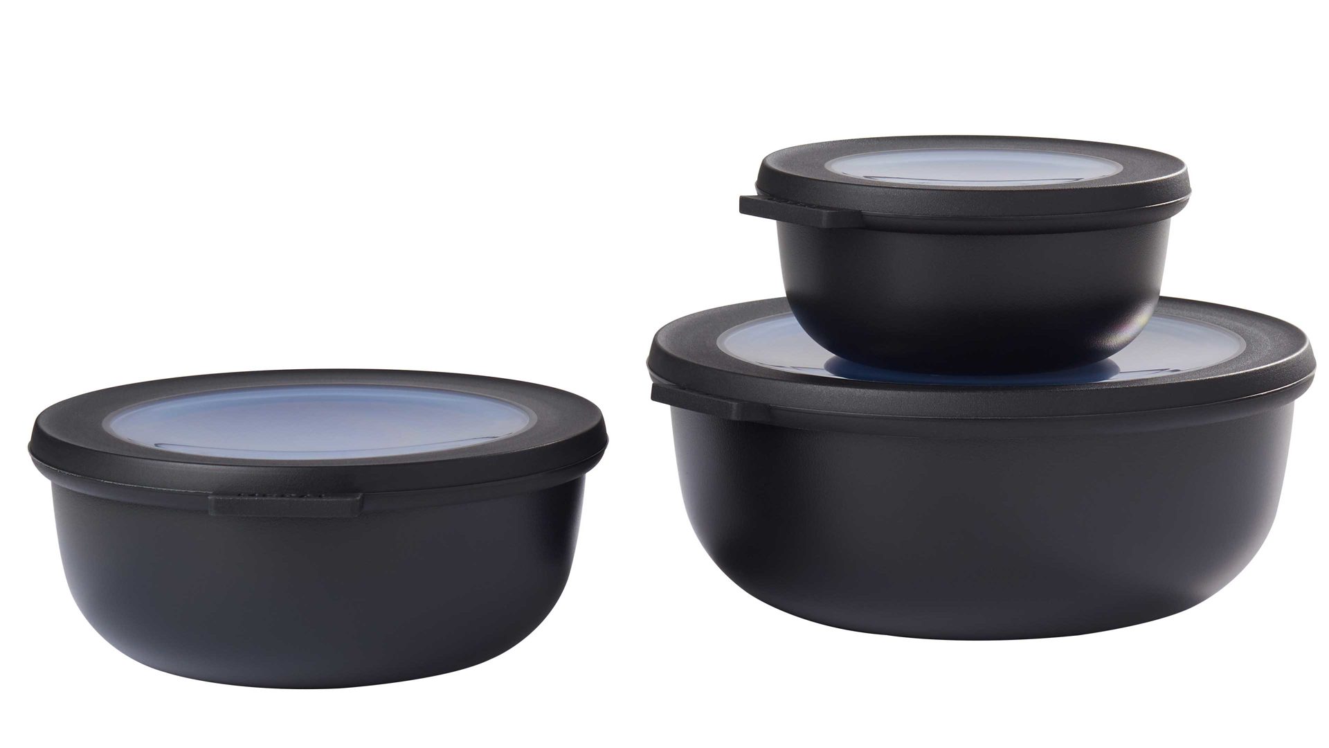 nordisch schwarzer, BPA-freier Kunststoff und Deckeln mit transparentem Sichtfeld und Rand in Schüsselfarbe