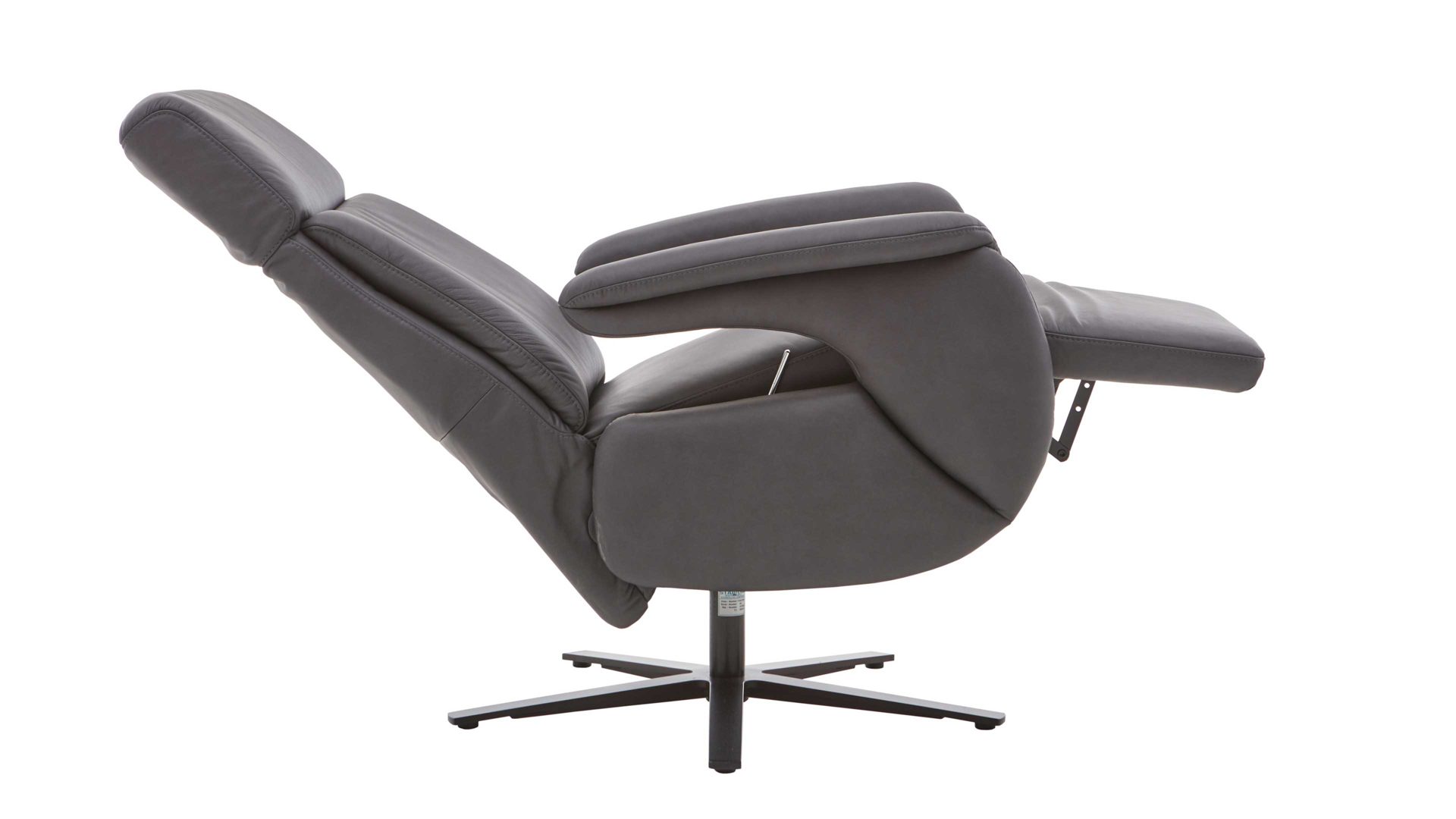 Er kombiniert einen edlen anthrazitfarbenen Lederbezug mit einem mattschwarzem Metall-Sternfuß. Die Farben strahlen stilvolle Eleganz aus und harmonieren hervorragend miteinander. Darüber hinaus begeistert die hohe Qualität der Materialien: Der Lederbezug ist strapazierfähig und der robuste Metallfuß sorgt für die nötige Standfestigkeit und Stabilität des TV-Sessels.