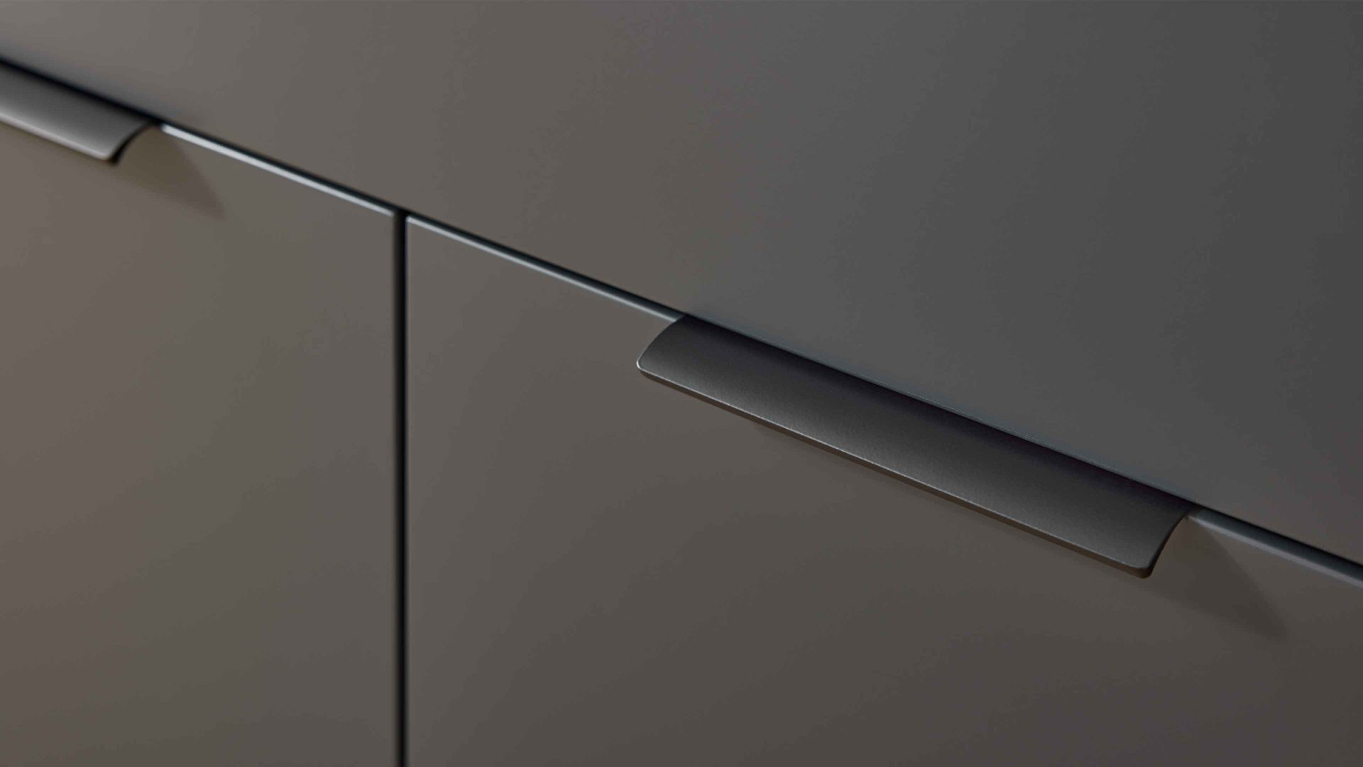 anthrazitfarbener Mattlack & Asteiche - eine Schublade, zwei Türen, Breite ca. 80 cm
