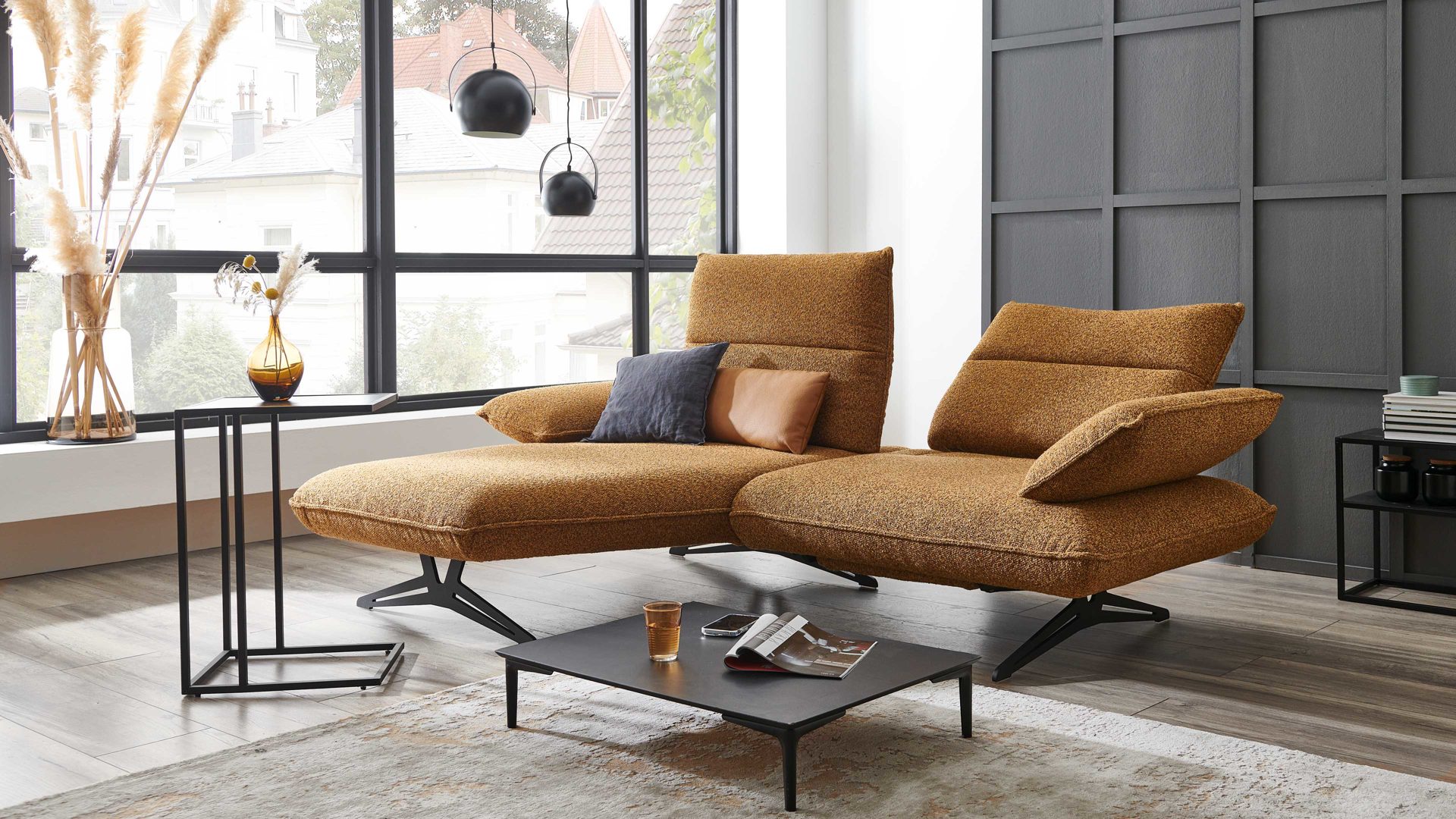 Das KOINOR Ecksofa Caio ist in verschiedenen Stoff- und Ledervarianten erhältlich und wird in Deutschland hergestellt und ist mit dem Golden M ausgezeichnet. Gönnen Sie sich diesen luxuriösen Begleiter für Ihr Zuhause und erleben Sie pure Gemütlichkeit auf höchstem Niveau.