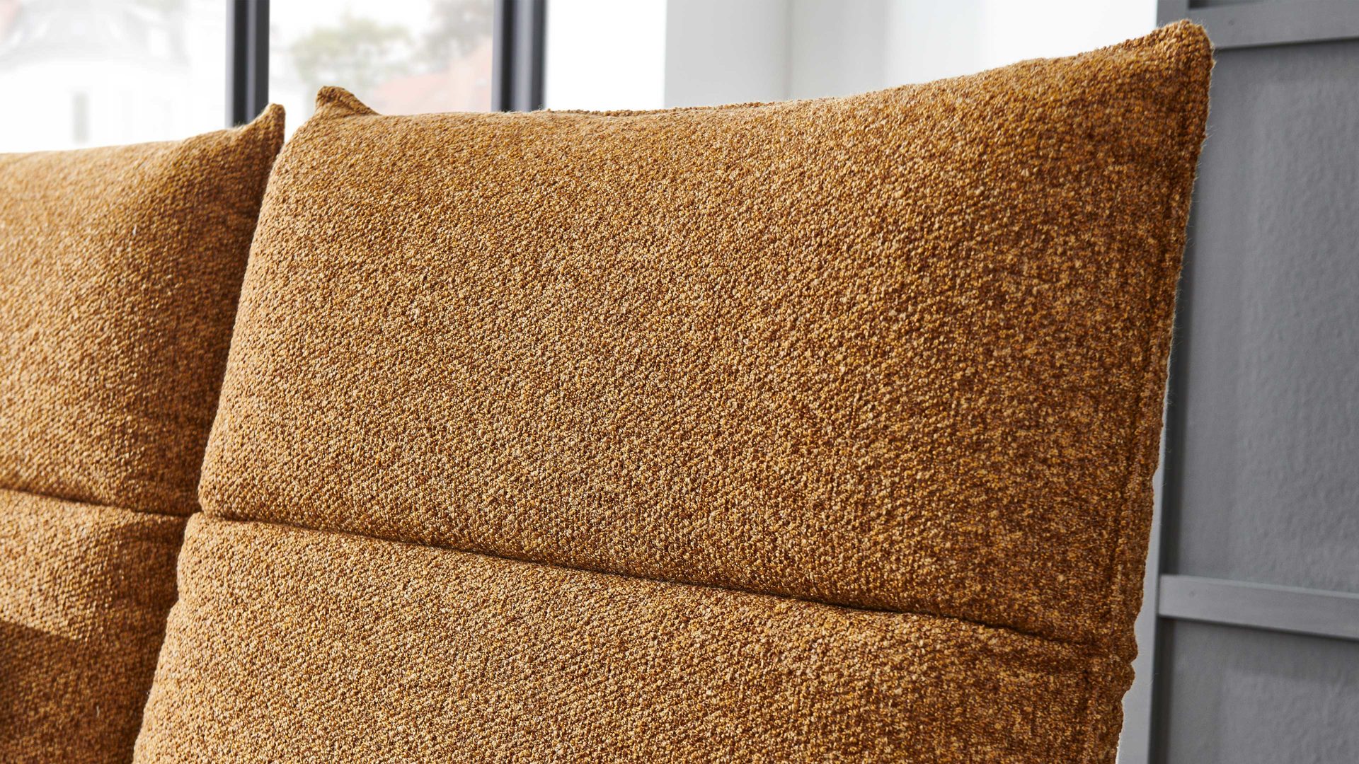 Die legere lockere Polsterung sorgt für höchsten Sitzkomfort und lädt zum Entspannen ein. Dasim Originalstoff bezogene Rückenteil gibt der Polsterecke eine edle Optik und macht es zu einem echten Blickfang.