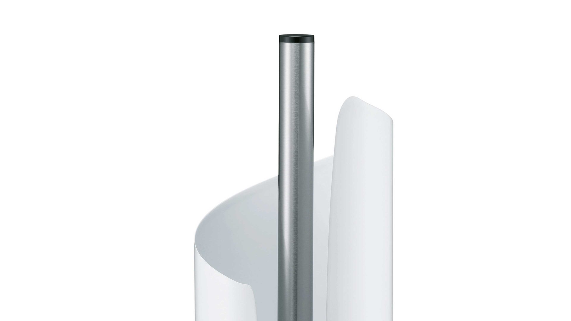 Gefertigt ist der Halter für Küchenrollen aus Weiß beschichtetem Metall, das pflegeleicht und problemlos abwaschbar ist. Stellen Sie den ca. 32 cm hohen Rollenhalter auf Ihre Arbeitsplatte und haben Sie die praktischen Küchentücher so stets griffbereit. Auf der Halterung mit einem Durchmesser von ca. 15 cm hat genaue eine Küchenrolle Platz.