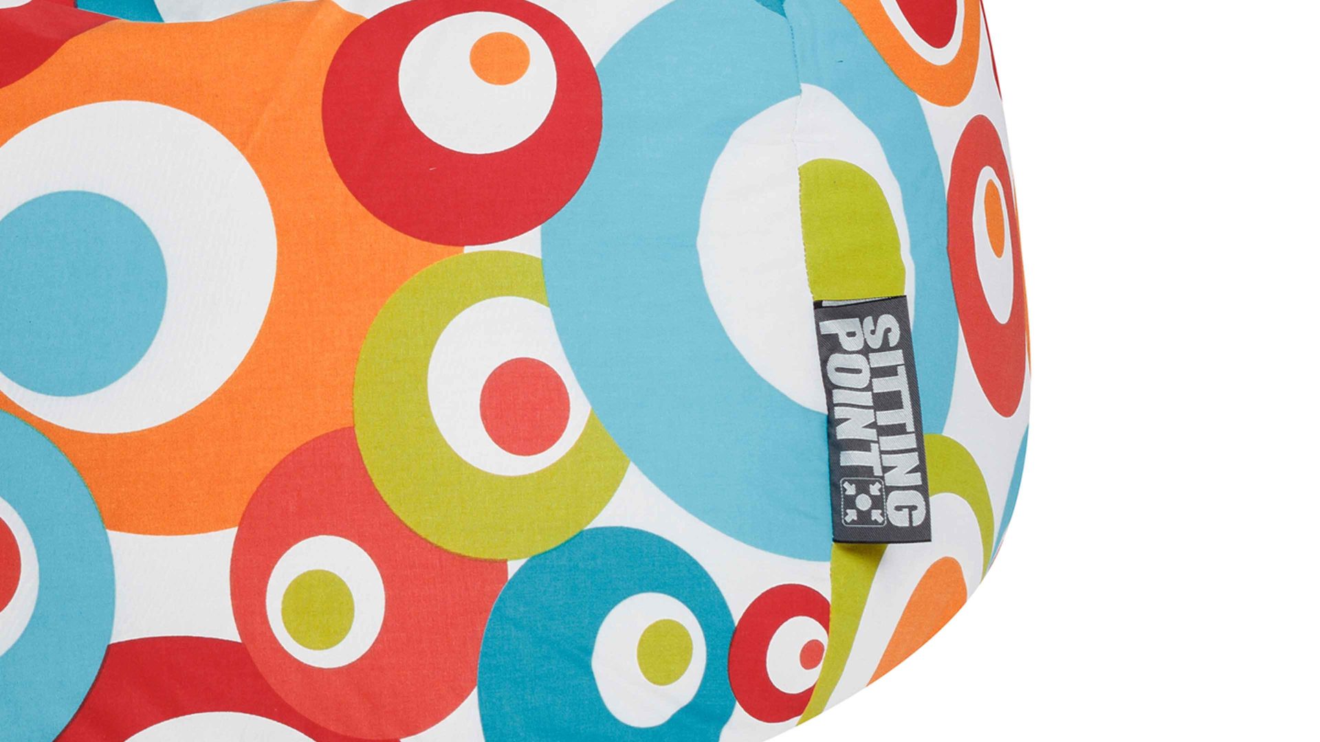 An die bunten 70er-Jahre erinnert dieser farbenfroh gestaltete Sitzsack L von SITTING POINT mit seinem auffälligen Muster. Kreise und Kugeln in verschiedenen, ansprechenden Farben ergeben auf dem weißen Hintergrund ein lebendiges Bild. Das Sitzmöbel ist mit Polystyrol gefüllt und mit einem Baumwollüberzug versehen.