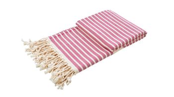 Pink und Weiß gestreiftes Baumwollgewebe mit geknoteten Fransen