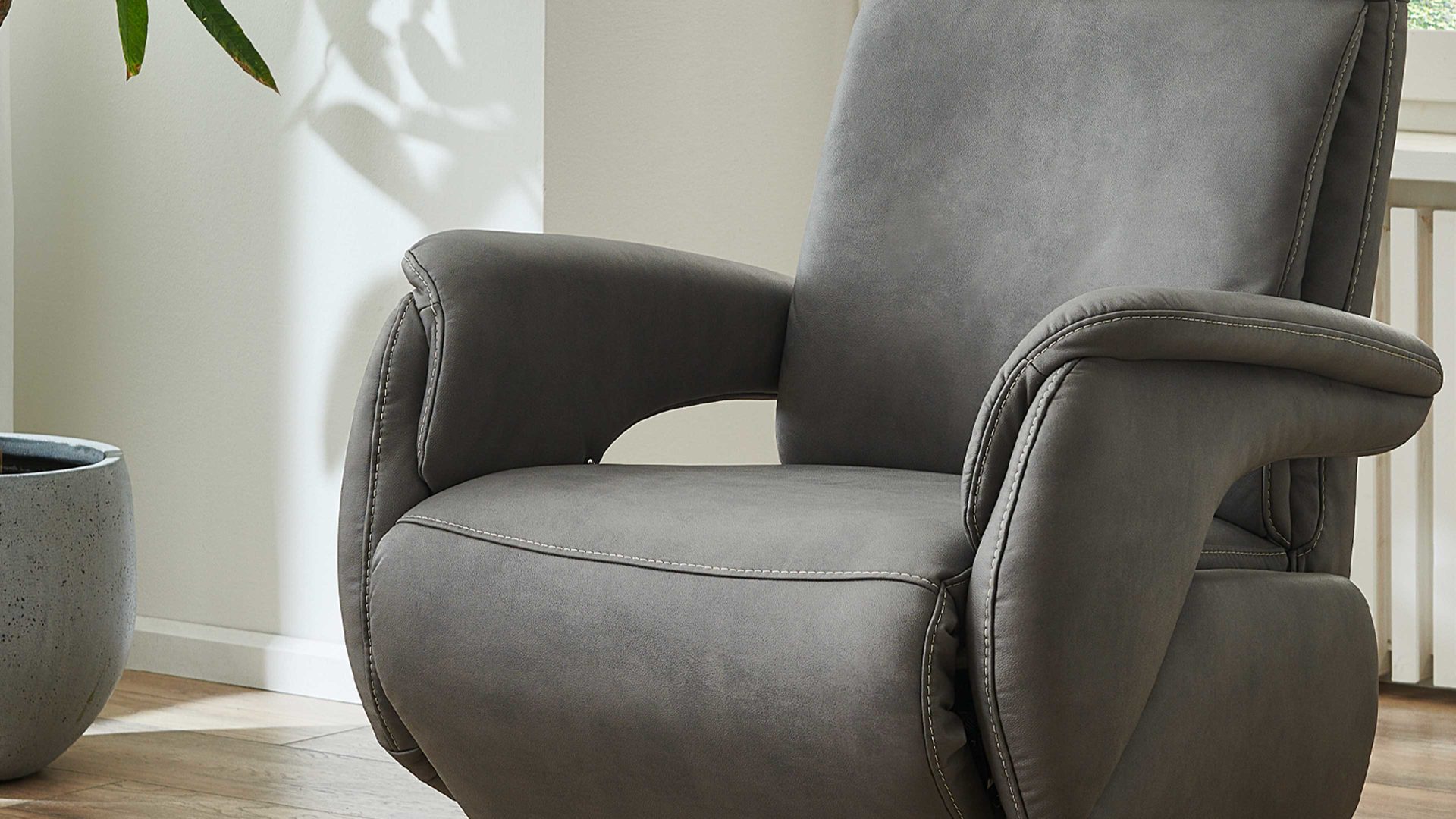 Er kombiniert einen edlen grauen Mikrofaserbezug in geprägter Lederoptik mit einem glänzend verchromten Metall-Sternfuß. Die Farben strahlen stilvolle Eleganz aus und harmonieren hervorragend miteinander. Darüber hinaus begeistert die hohe Qualität der Materialien: Der Bezug strapazierfähig und atmungsaktiv und der robuste Metallfuß sorgt für die nötige Standfestigkeit und Stabilität des TV-Sessels.