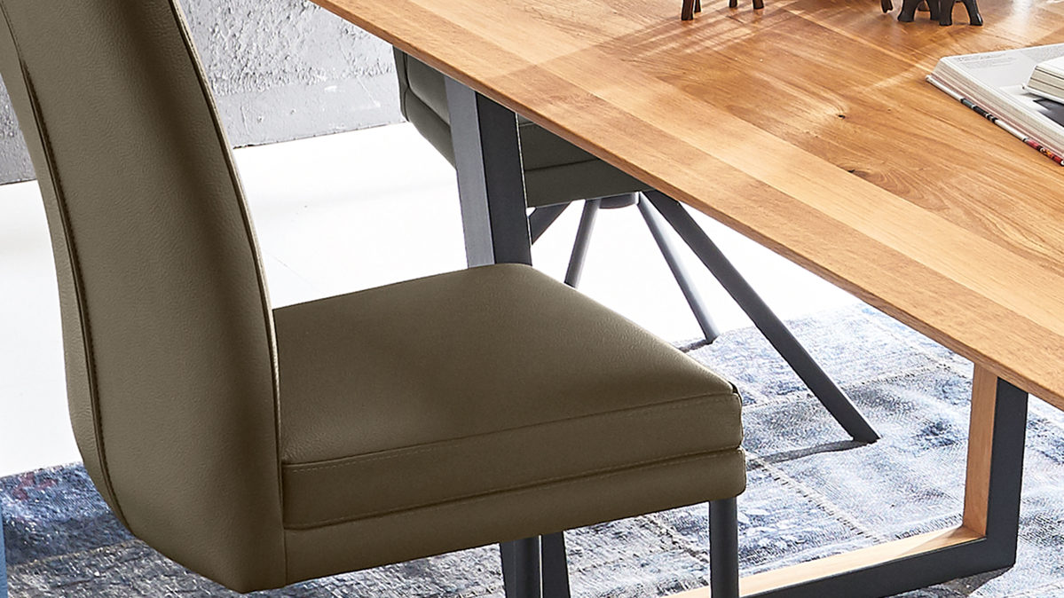 nach Wunsch kombinierbare Stühle - aus Mikrofaser- oder Lederbezügen, Metall- oder Holzgestellen und verschiedenen Sitzschalen mit und ohne Funktion wählen