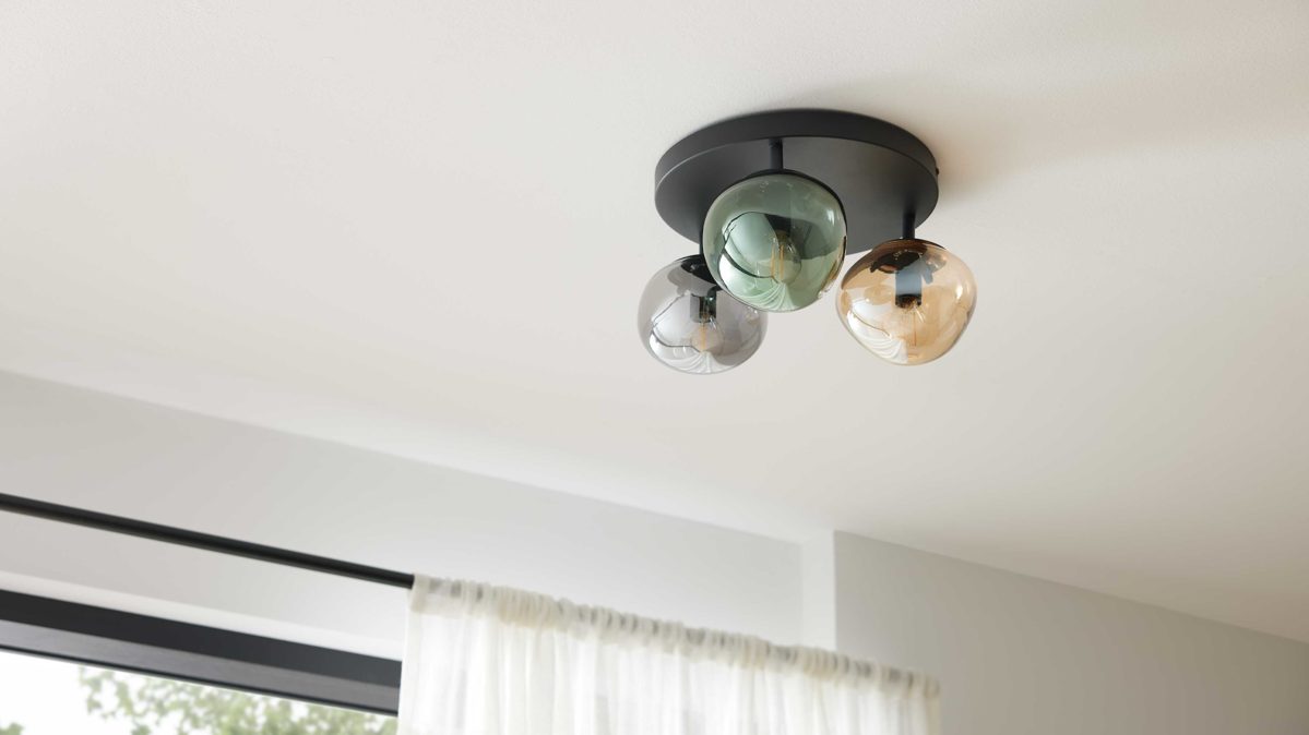 Stil, Wärme und ein Hauch Natur: Die Deckenlampe aus der Interliving Leuchten Serie 9350 setzt mit ihren organisch geformten, matten Glas-Lampenschirmen in den Farbtönen Amber, Grün und Rauch ein atmosphärisches Statement in deinem Zuhause. Der mattschwarze Metallsockel bildet dazu den eleganten Kontrast – ideal als Deckenleuchte für Wohnzimmer, Essbereich oder Flur.
