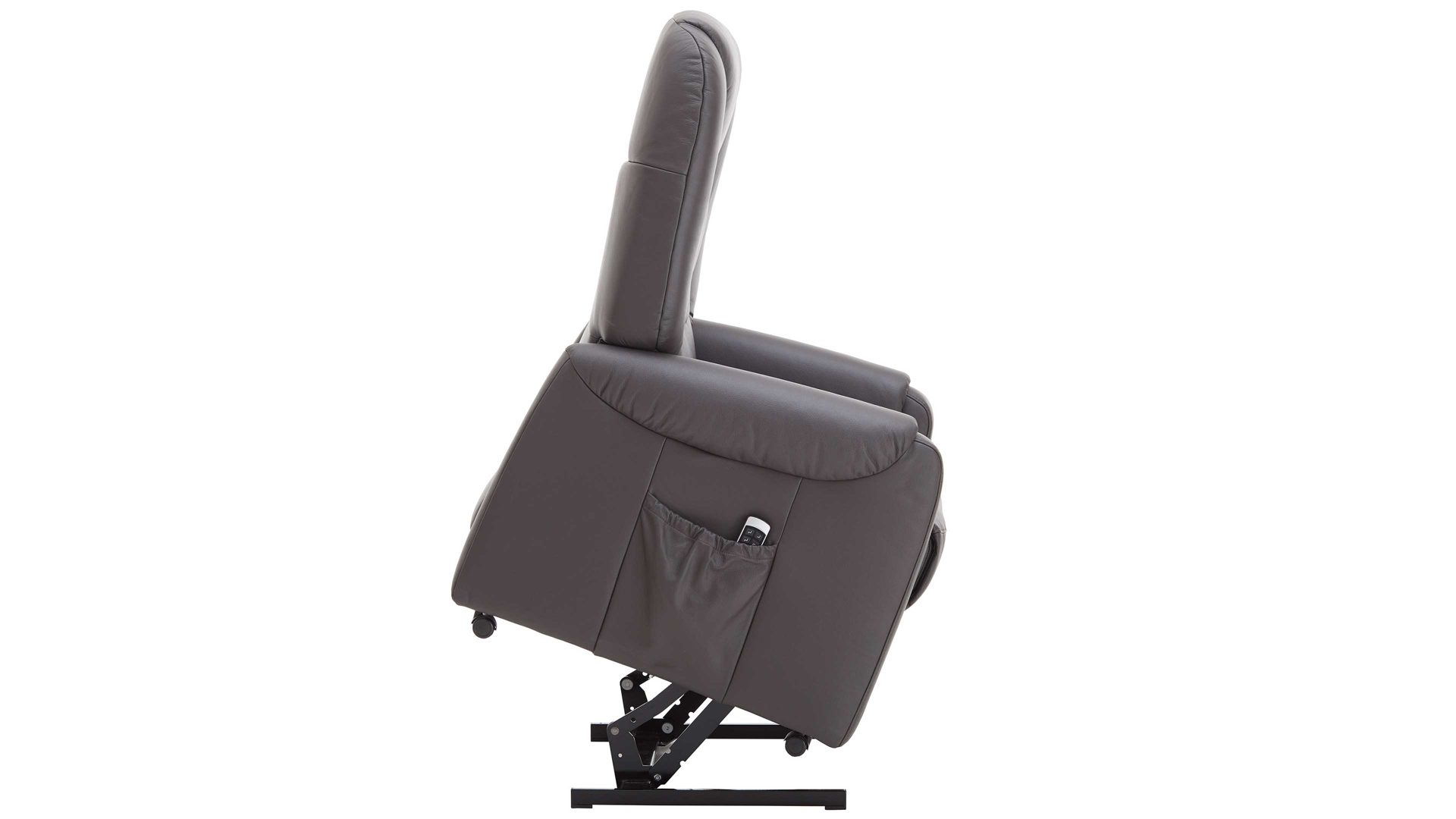 Überhaupt ermöglicht der Sessel Carlos Entspannung vom Feinsten. Er verfügt über zwei Motoren, mit denen sich die standardmäßige Sitzposition getrennt zur TV- und Liegeposition verstellen lässt. Zudem leistet der TV-Sessel bei Bedarf Aufstehhilfe. Ein weiteres funktionales Highlight ist die manuelle Kopfteilverstellung - für eine effektive Entlastung des Kopf-Nacken-Bereichs. In der praktischen Seitentasche finden beispielsweise die Fernbedienungen für TV und Medienplayer Platz. Der Sessel selbst wird bequem mittels Handschalter bedient.