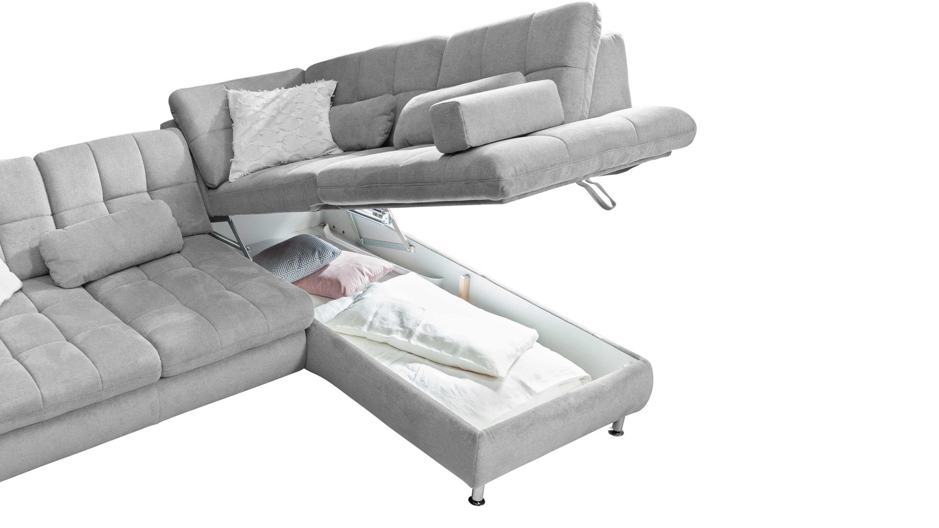 Der Bettkasten bildet ein praktisches Mehrpreis-Zubehör für das Ecksofa des Modells Modulmaster MM-MP1143.