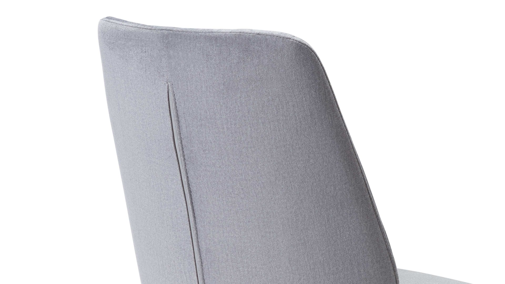 Der Polsterstuhl Eldar präsentiert sich modern und extravagant designt. Zudem ist er hochwertig verarbeitet und ungemein bequem. Mit der gelungenen Kombination aus dem edlen grauen Stoffbezug und dem schwarz lackierten Buchenholzgestell strahlt der Stuhl noble Eleganz und einladende Gemütlichkeit aus. Für das gewisse optische Etwas sorgt die aufwendig gesteppte Rückenlehne.