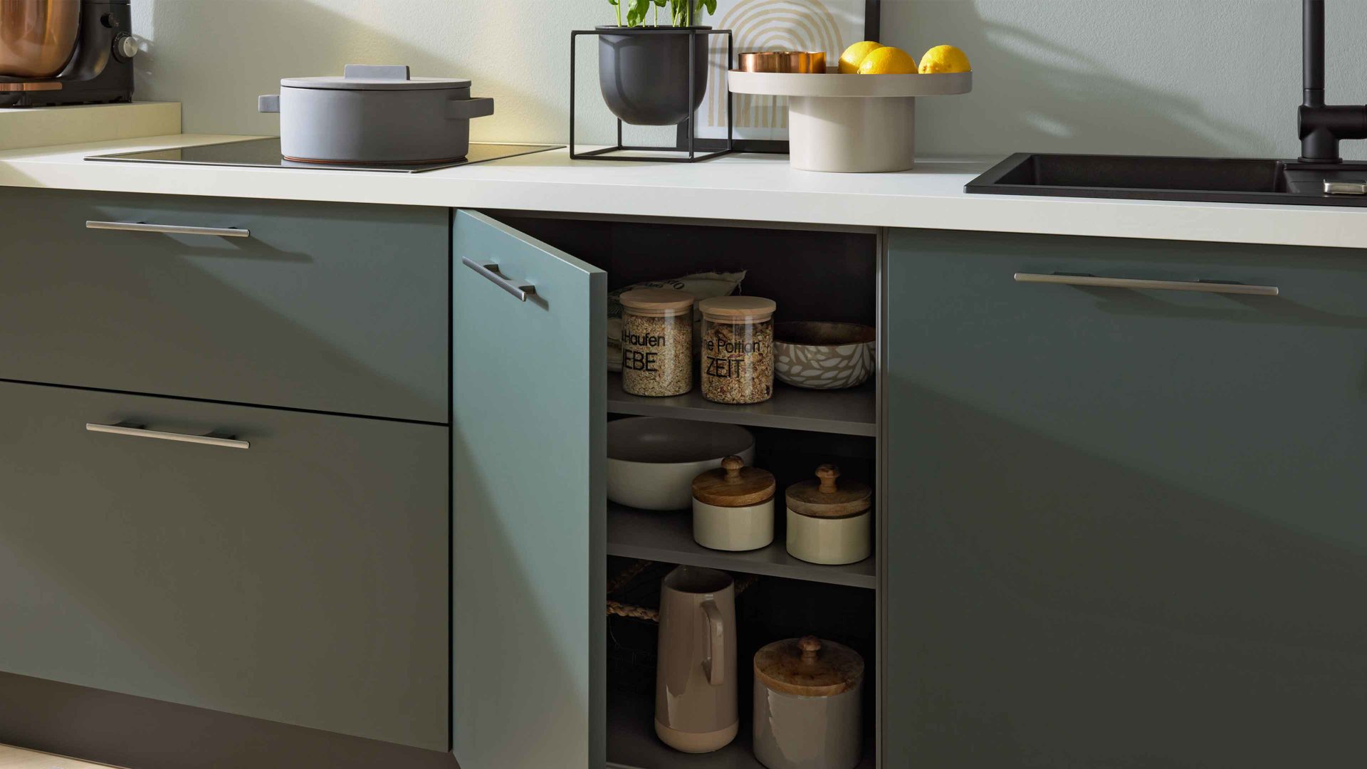 Die Interliving Küche Serie 3059 lässt sich flexibel an deine Wünsche anpassen und optional mit einem Geschirrspüler erweitern. Produziert in Deutschland, überzeugt sie durch erstklassige Verarbeitung, langlebige Materialien und modernes Design. Mit der 5 Jahre Herstellergarantie auf alle Möbelteile erhältst du zusätzlich ein starkes Qualitätsversprechen für deine neue Traumküche