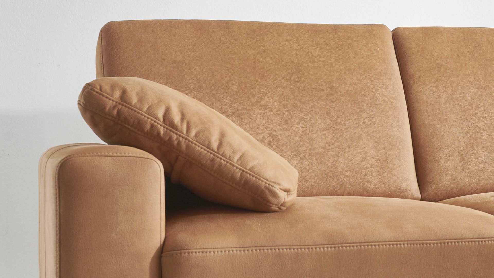 Das ca. 50 x 50 cm (BxL) große Armlehnenkissen ist ein praktisches Mehrpreis-Zubehör für die Sofas im zimtfarbenen Mikrofaserbezug aus dem Programm Modulmaster MM-ZE1001. Es verleiht der jeweiligen Couch ein Plus an Gemütlichkeit und kann als Armablage, aber auch als Kopfkissen bei einem Nickerchen verwendet werden.