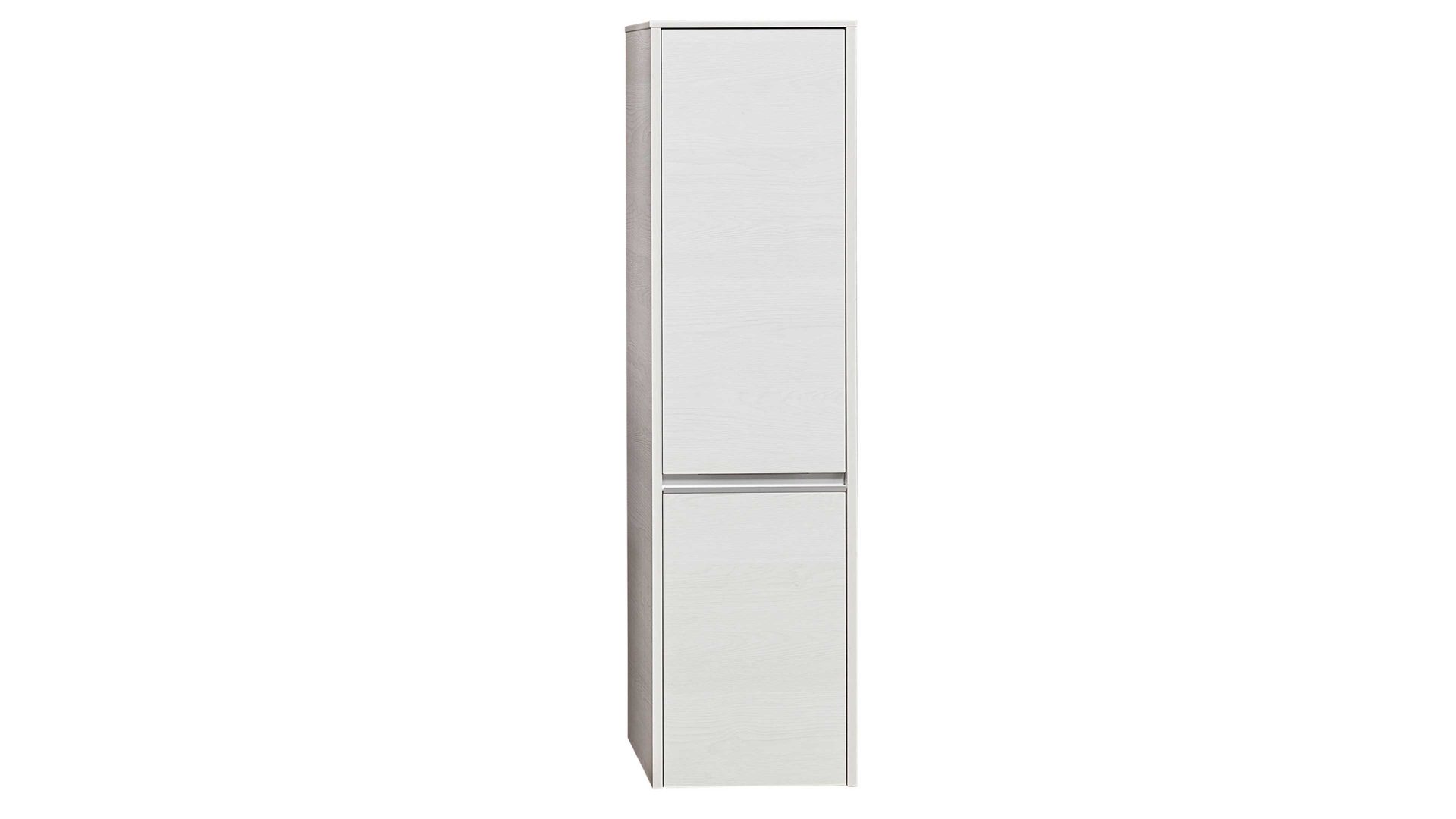 Charakteristisch sind die komplett verspiegelten Fronten und der Korpus in weißer Eiche-Nachbildung. Sie verleihen dem Badmöbel eine zeitlos elegante Ausstrahlung. Für eine stilsichere Abrundung sorgen die matten alufarbenen Griffleisten.