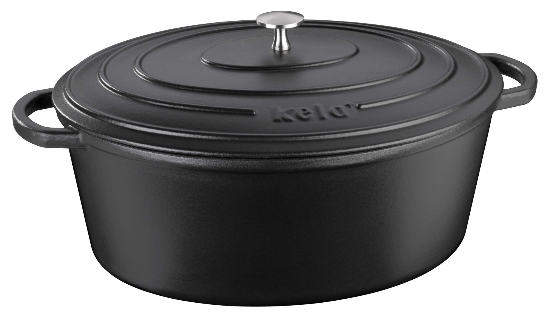 kela Bräter Calido |  Gusseisen mit schwarzer Emaille-Beschichtung innen und außen | Größe ca. 36 x 15 x 29 (BxHxT) | Bodenfläche ca. 29 x 20 cm (BxL) | Inhalt ca. 9,3 Liter | Edelstahl-Deckelknopf | große Griffe | einfache Reinigung | gleichmäßige Hitzeverteilung | gute Wärmespeicherung | energiesparend | perfekt für Anbraten und Schmoren | backofenfest bis 300 Grad Celsius | für alle Herdarten geeignet, auch für Induktion | zehn Jahre Hersteller-Qualitätsgarantie | in verschiedenen Farben und Größen bestellbar