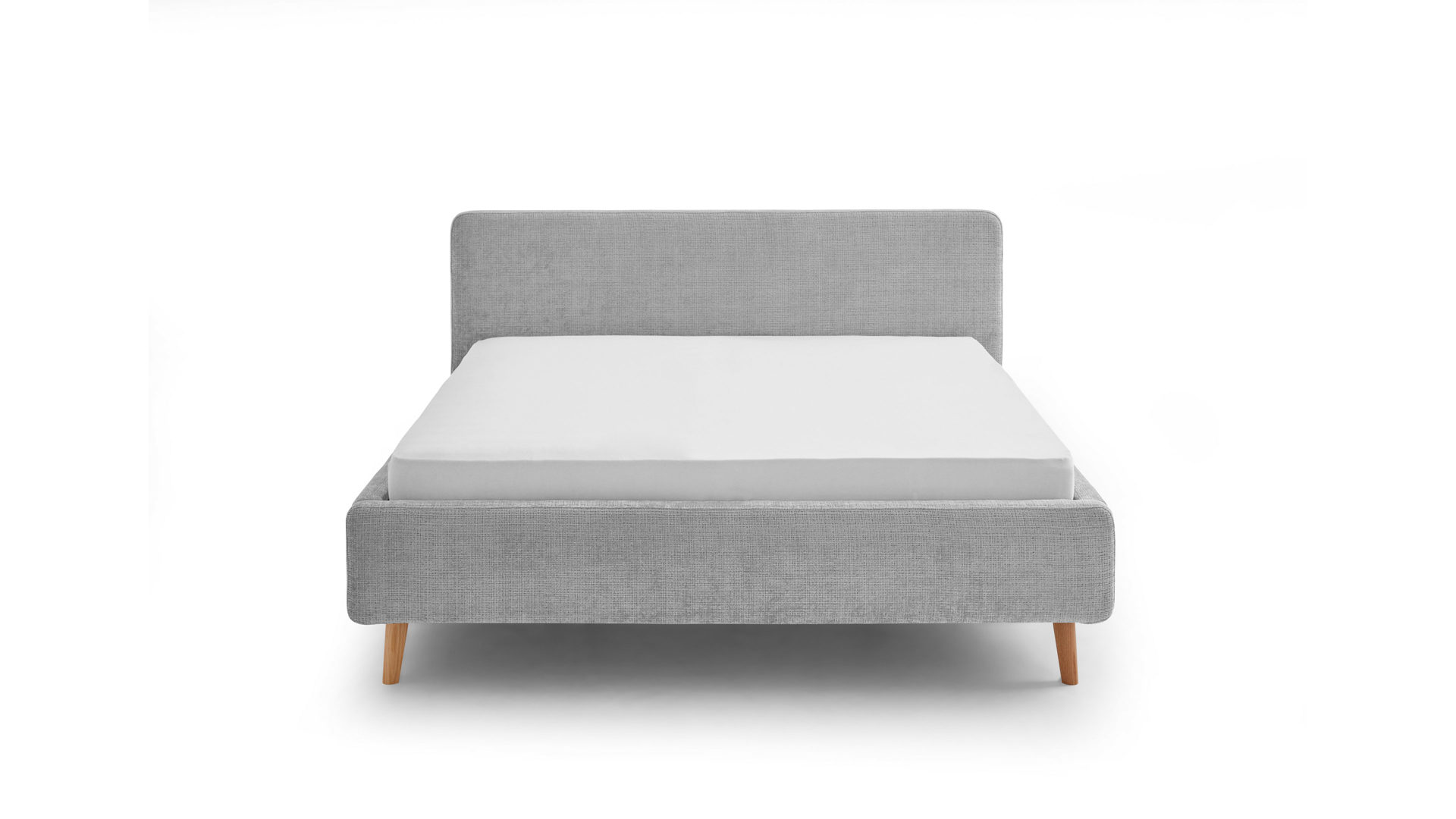 Das Polsterbettgestell Mattis begeistert durch die elegante Optik sowie die hervorragende Material- und Verarbeitungsqualität. Es kombiniert einen grauen Chenille-Bezug mit eichefarbenen Holzfüßen. Sowohl die Bettseiten als auch das Polsterkopfteil sind glatt bezogen. Letzteres lädt Sie ein, sich anzulehnen, wenn Sie abends im Bett vor dem Schlafen noch fernsehen oder in einem Buch lesen.