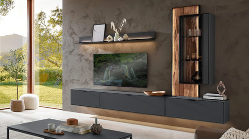 graphitfarbene Lackoberflächen & geölte Eiche – Breite ca. 345 cm