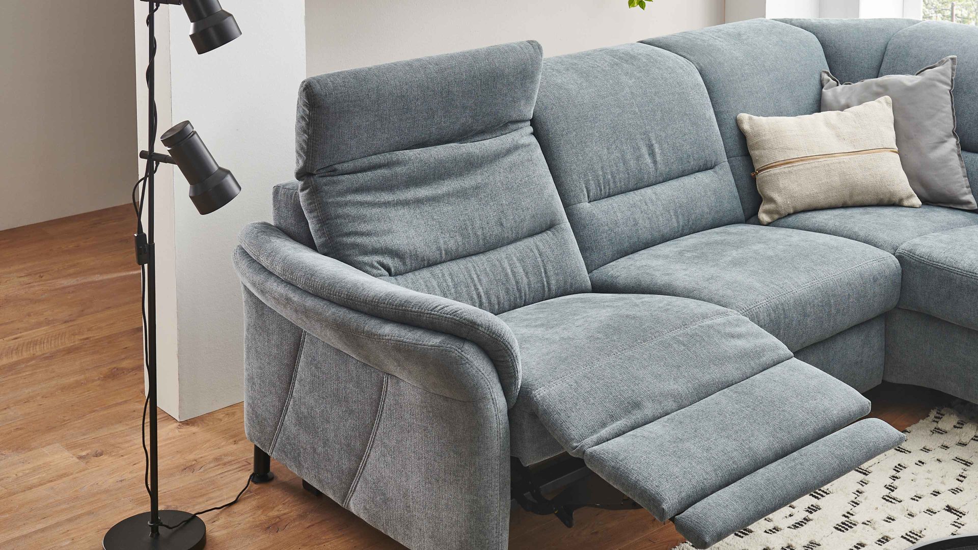 Während die Beinauflage auf Sitzhöhe fährt, bewegt sich der Sitz einige Zentimeter nach oben und vorne, was zu einer Relaxposition führt. Daraufhin fährt der Rücken weiter bis zur Liegeposition und nimmt den Sitz mit - Letzterer begibt sich noch ein Stück nach oben und vorne. Der Rücken bleibt dabei stets wandfrei - daher rührt der Name dieser Funktion. Zusätzlich können Sie das Kopfpolster motorisch stufenlos verstellen.