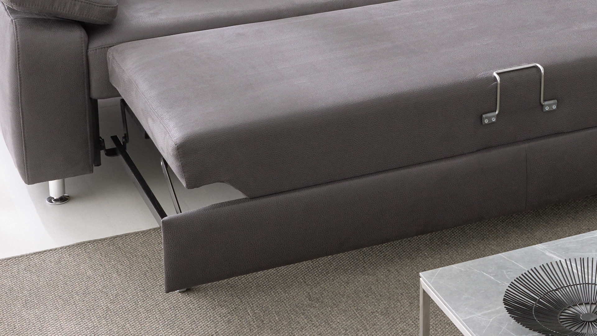 Indem Sie den Sitz nach vorne ausziehen, erweitern Sie die standardmäßige Sitzfläche um ca. 155 x 123 cm (BxL). Die Federholzleisten und die mit hochwertigem Matratzendrell bezogene Liegefläche sorgen für guten Liege- und Schlafkomfort. Als besonders praktisch erweist sich die Bettfunktion, wenn Gäste bei Ihnen übernachten.