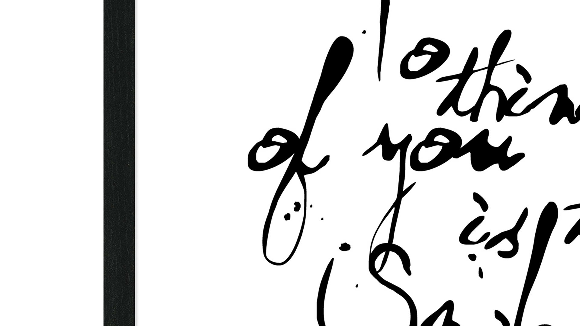 Papier auf Buchbinderkarton mit schwarzem Lettermotiv auf Weiß