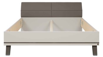 Das Bettgestell aus der Interliving Schlafzimmer Serie 1032 überzeugt mit einer eleganten Optik und hochwertigen Materialien. Die kieselgrauen Oberflächen sorgen für eine helle, freundliche Atmosphäre im Schlafzimmer. Ein besonderer Blickfang ist das Polsterkopfteil mit havannafarbenem Kunstlederbezug, veredelt durch stilvolle Steppung und dekorative Ziernähte. Schieferfarbene Metallfüße setzen moderne Akzente und verleihen dem Bett Stabilität und Charakter.