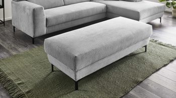 platingrauer Breitcordbezug, kombiniert mit mattschwarz pulverbeschichteten Metallfüßen