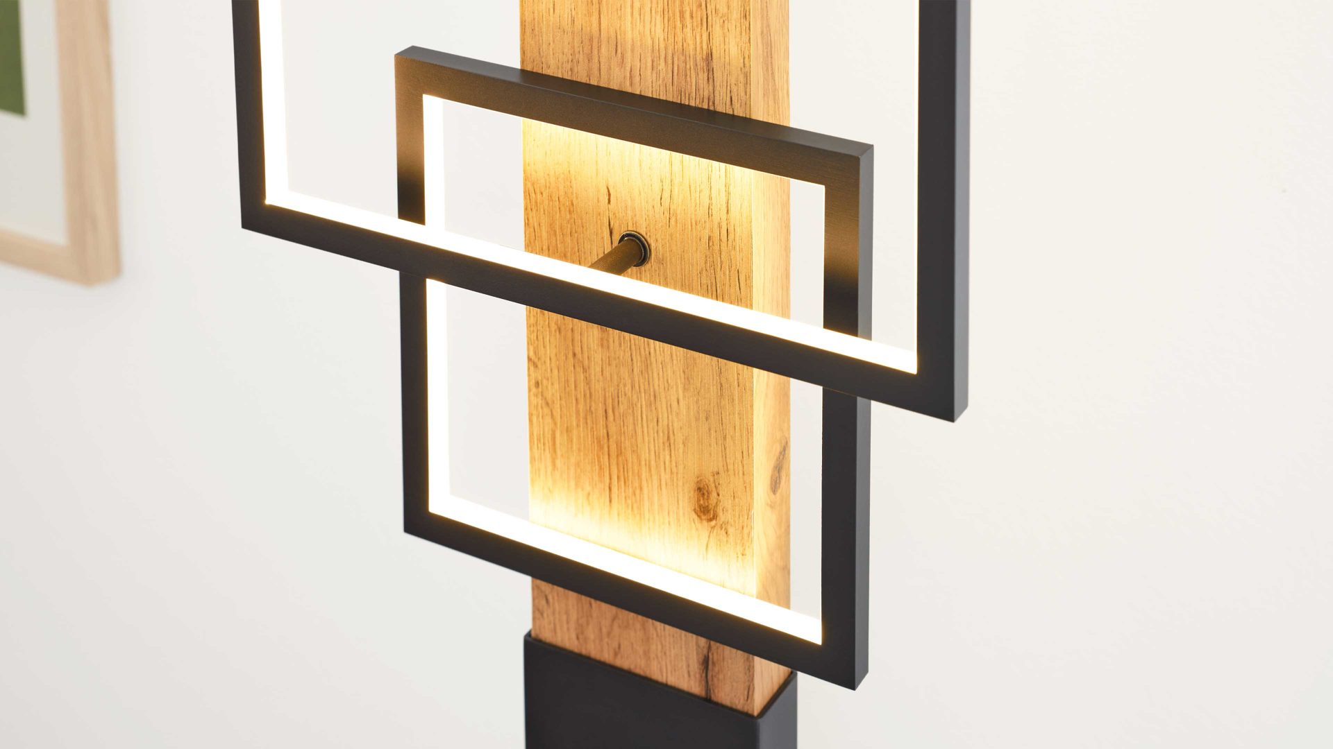 Die Wohnzimmer-Stehleuchte überzeugt durch ihre ausgewogenen Proportionen: Ein Rechteck mit ca. 30 x 40 cm (B/L) sowie zwei Quadrate mit je ca. 20 x 20 cm (B/L) prägen die markante Linienführung. Mit einer Gesamthöhe von ca. 160 cm und Maßen von ca. 30 x 160 x 16 cm (B/H/T) setzt sie stilvolle Akzente – ob neben dem Sofa, in der Leseecke oder im Eingangsbereich. Der Fußtrittschalter sorgt für bequeme Bedienung, während das ca. 180 cm lange Anschlusskabel flexible Platzierungsmöglichkeiten bietet.