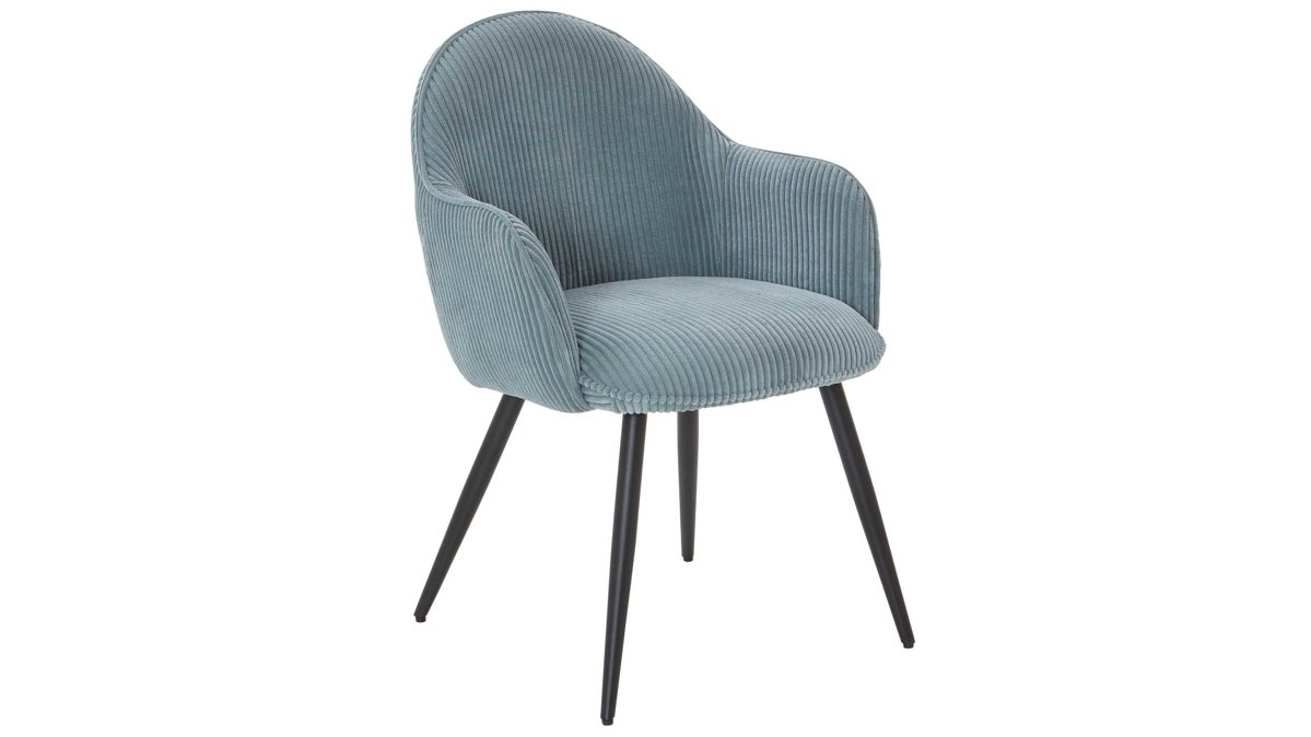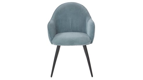 hellblauer Breitcordbezug und schwarz pulverbeschichtete Metallfüße