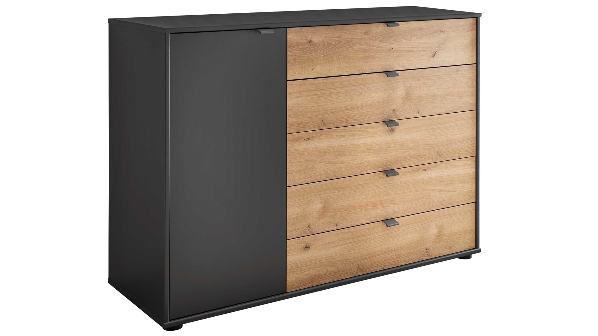 matte graphitfarbene Oberflächen, kombiniert mit biancofarbener Eiche-Nachbildung