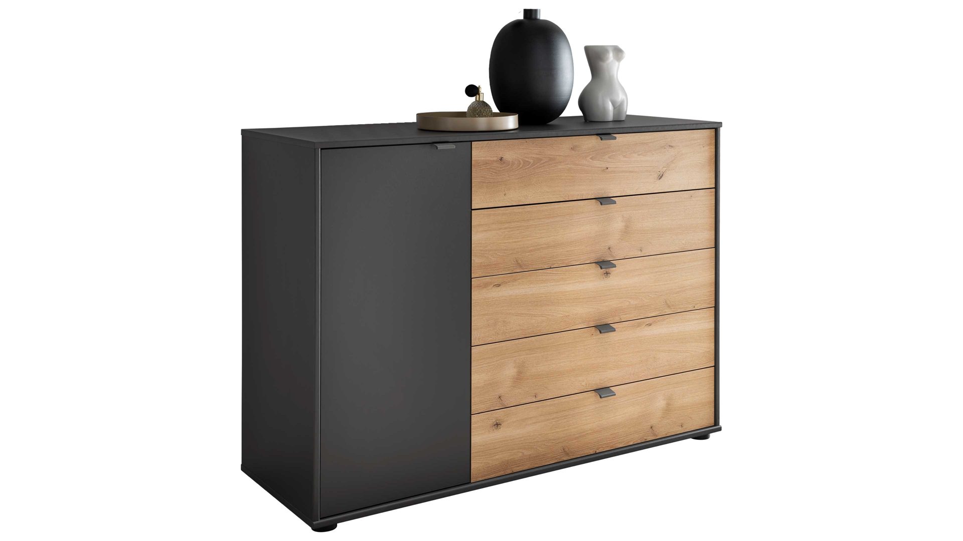 mattes Graphit, kombiniert mit biancofarbener Eiche Nachbildung und mattschwarzen Griffen