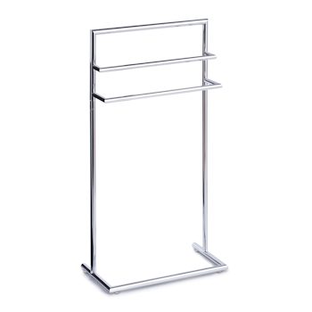 Sie haben die Wahl: Entweder Sie hängen zwei große oder mehrere kleine Handtücher auf die zwei feststehenden Stangen des Standmodells. Der Halter für Ihre Tücher steht auf einer Bodenplatte und hat die Maße von ca. 20 x 81 x 30 cm (BxHxL), womit das Modell sowohl in ein großes als auch ein kleineres Badezimmer passt.