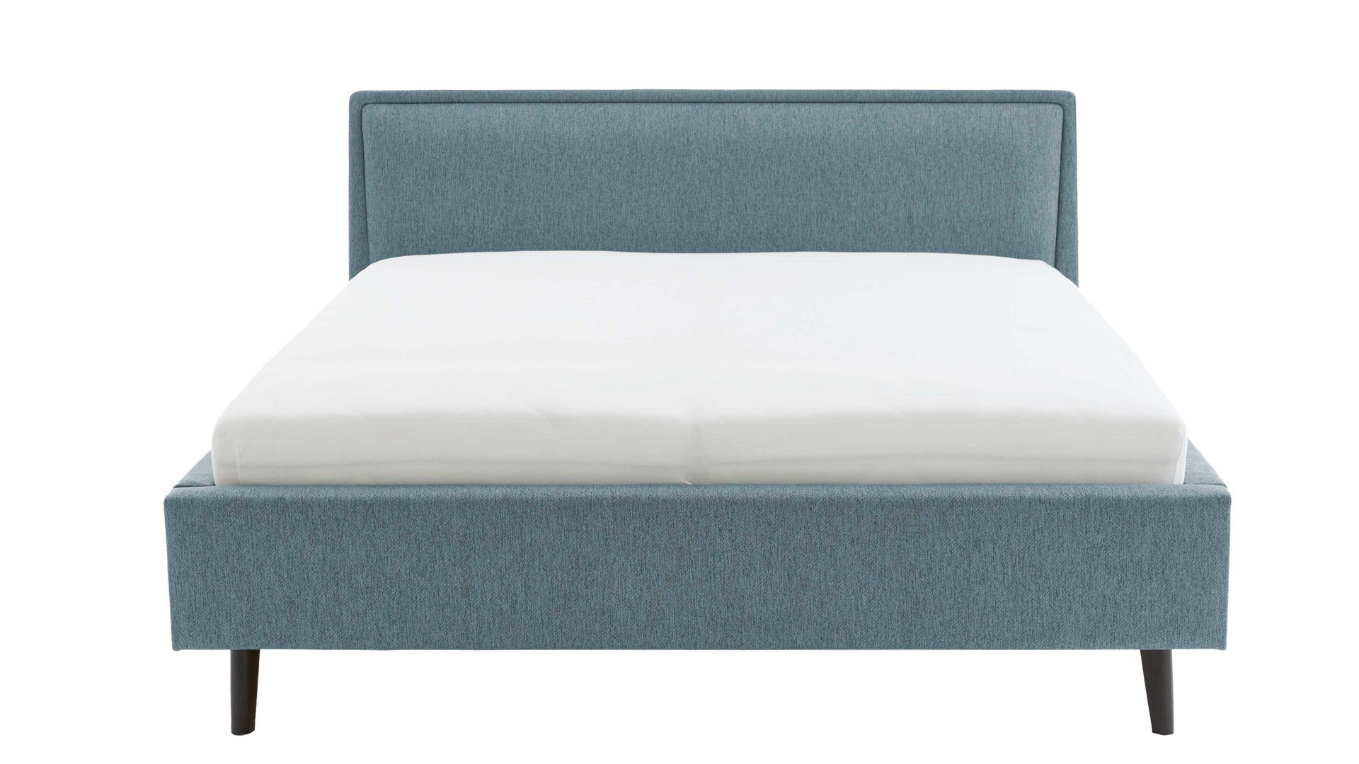 Das Polsterbettgestell Frieda mit Bettkasten verkörpert modernen Komfort. Mit dem oceanfarbenen Stoffbezug und den schwarzen Holzfüßen präsentiert es sich elegant und gemütlich designt. Die Bettseiten sind genauso wie das Polsterkopfteil glatt bezogen. Letzteres ist eine angenehm weiche Rückenlehne, wenn Sie abends im Bett vor dem Schlafen noch entspannt in Ihrem Buch lesen oder fernsehen möchten.