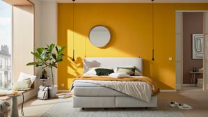 • Die Abbildung zeigt ein Wohnbeispiel, welches auch Dekoration sowie separat erhältliches Zubehör enthält. Im Lieferumfang enthalten ist ein Boxspringbett.